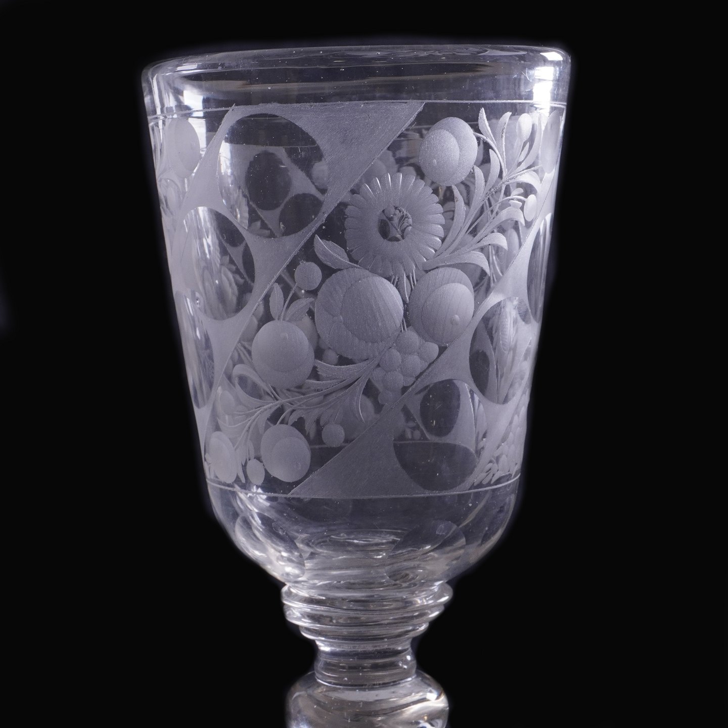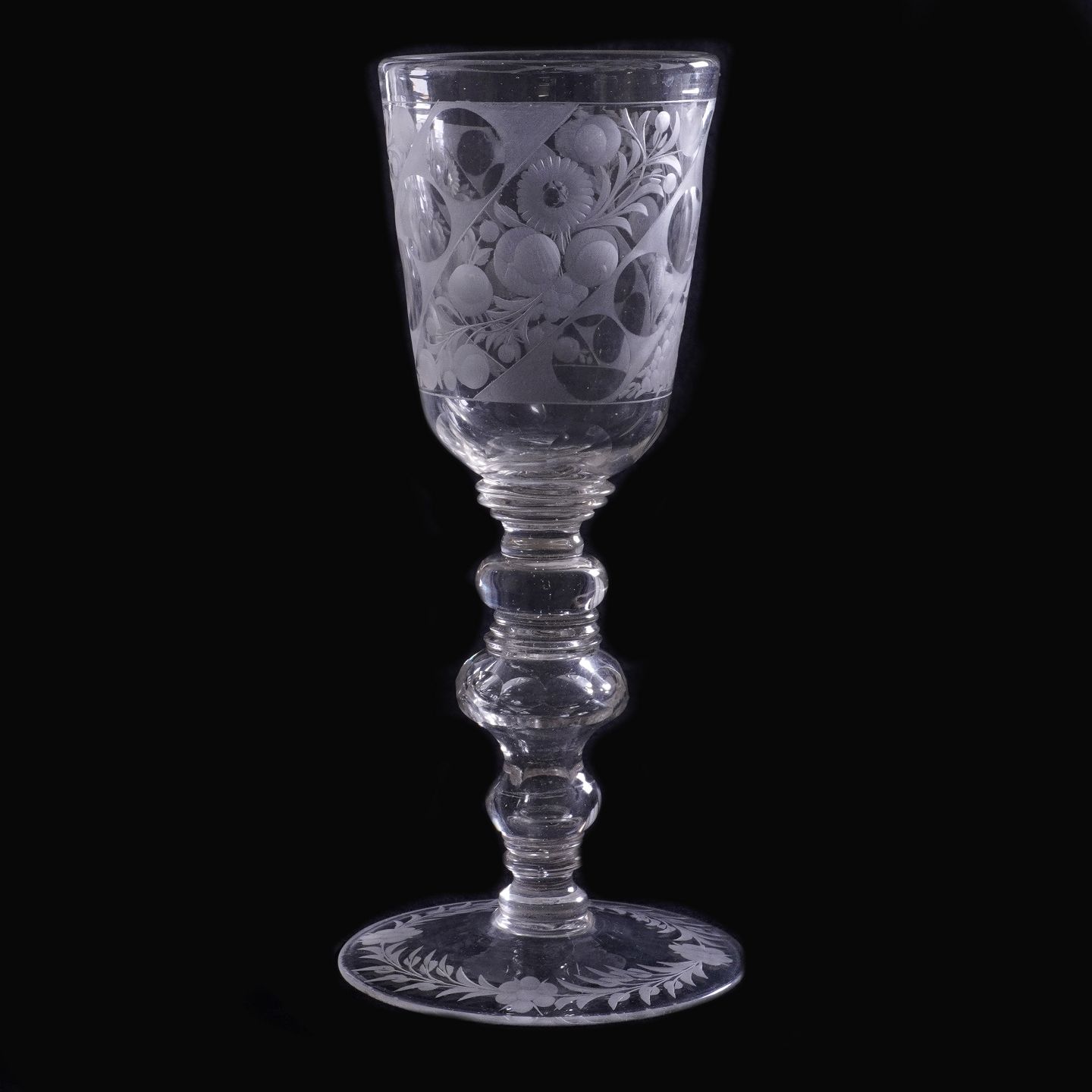 Deutscher Glaspokal mit stilisierten Blumen. Böhmen um 1700. H: 24cm