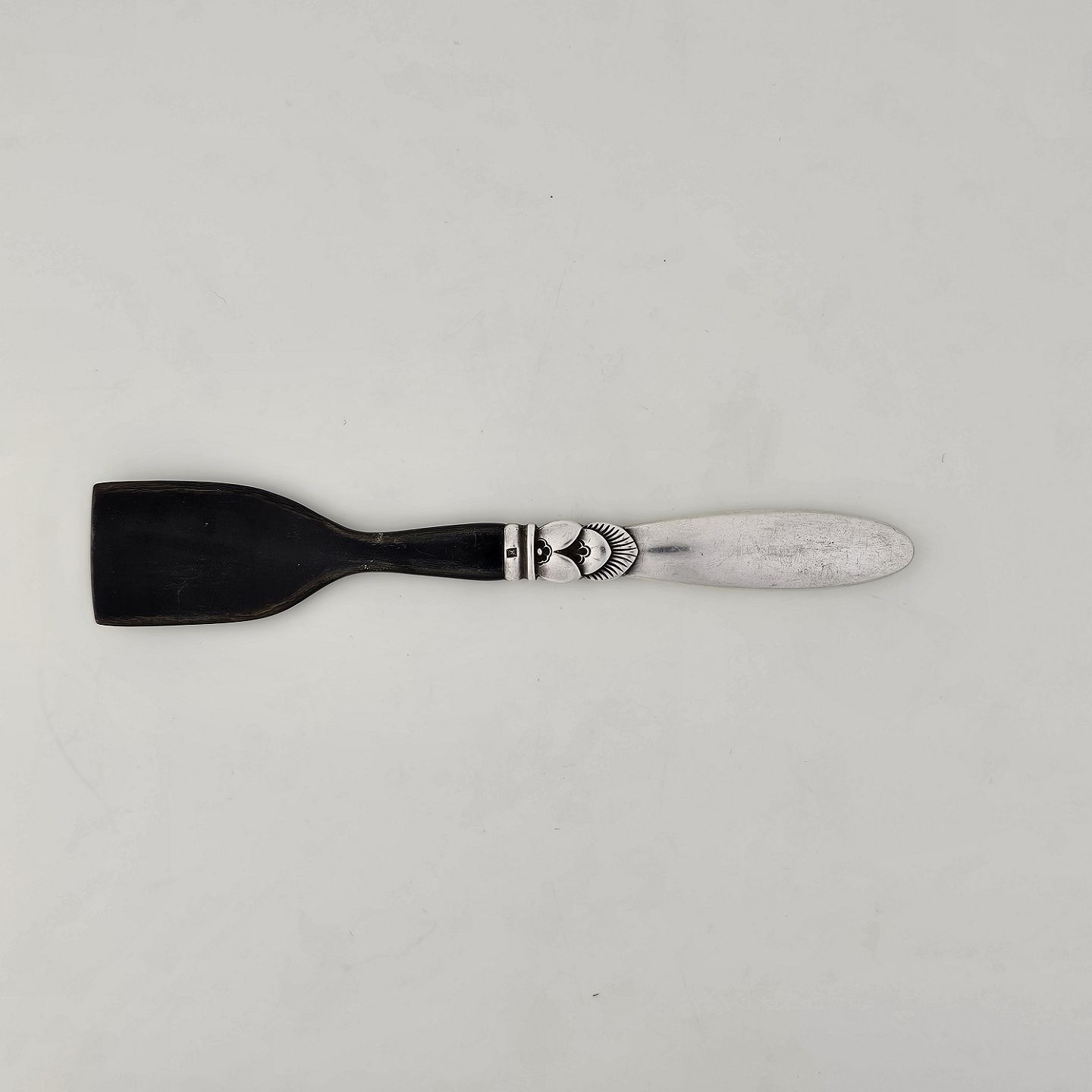 Kaktus barneske formet som skovl med hoved i træ og skaft af sølv