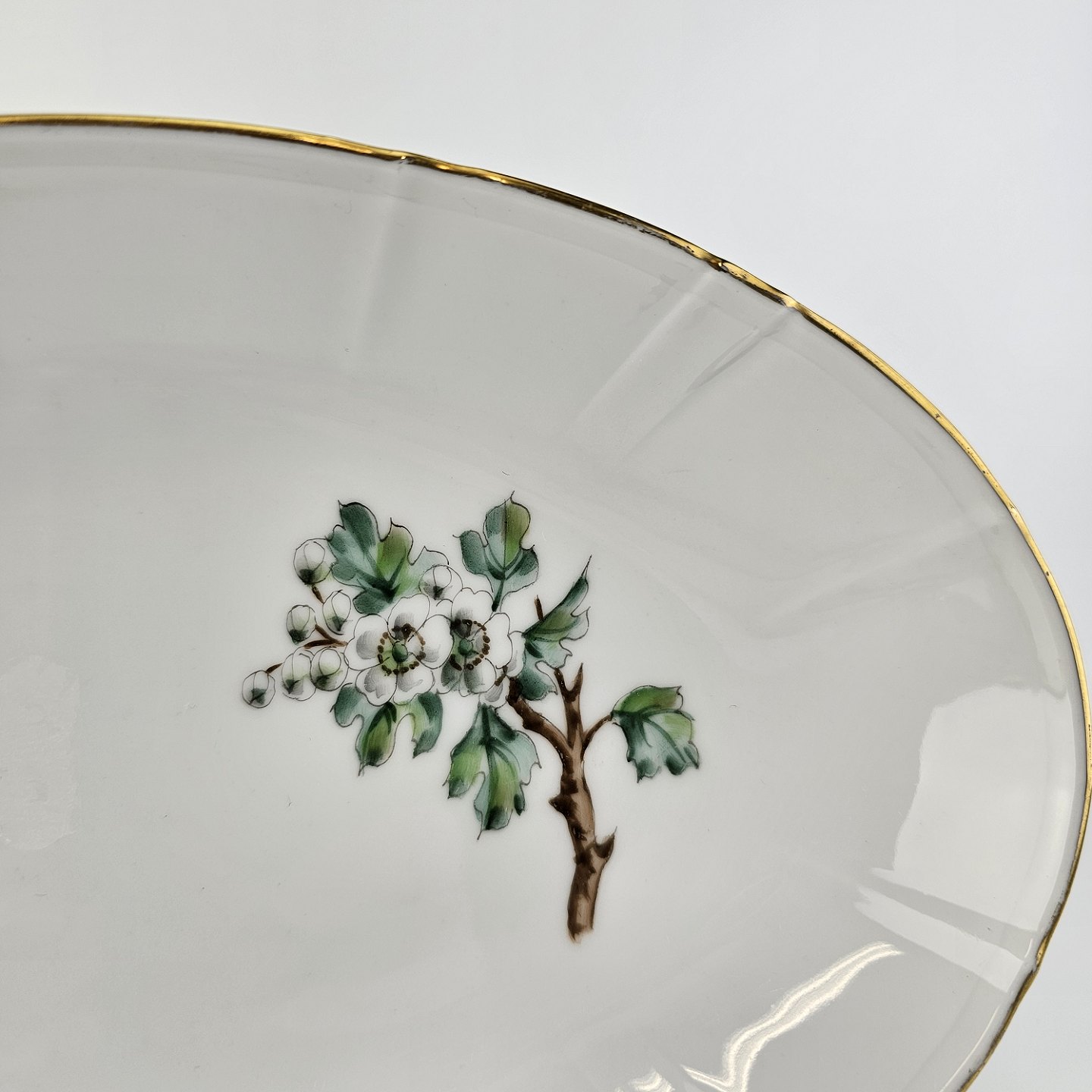 Eremitage er porcelæn dekoreret med hvidtjørn og guldkant