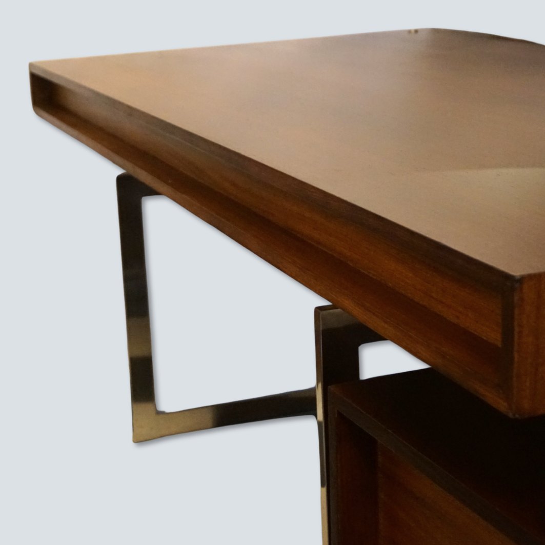 Text zugänglich auf Dänische: Bodil Kjær; Skrivebord af Wengé, med ben i forkromet stål