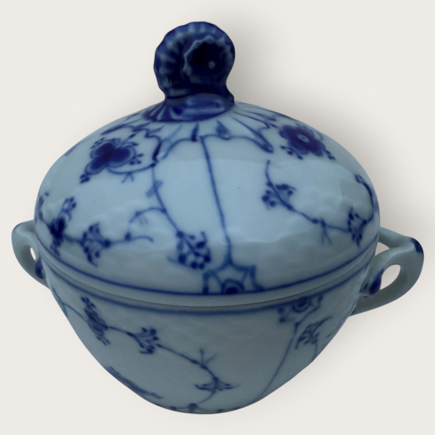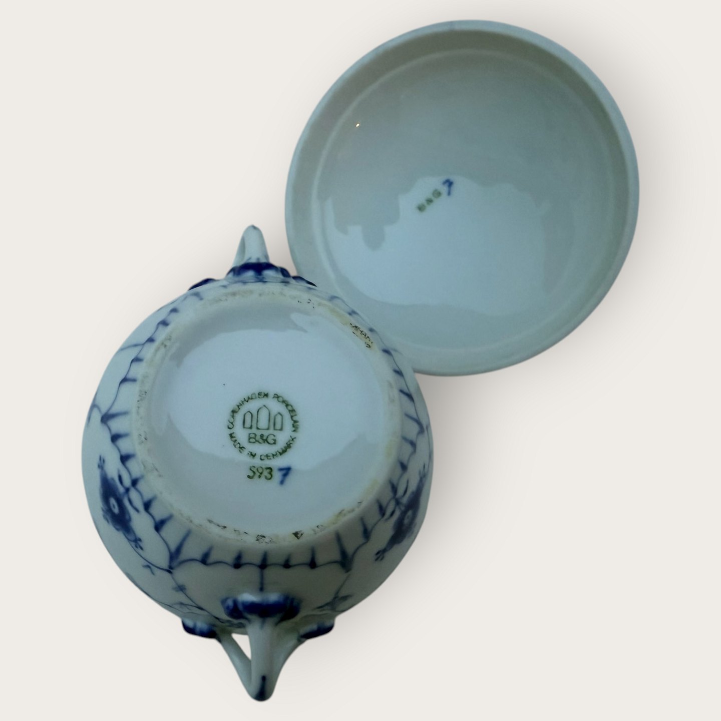 Bing & Grondahl, Musselmalet / blau geriffelt, Zuckerdose Nr. 593, 12 cm breit, 10 cm hoch, 1. Wahl, *Perfekter Zustand*