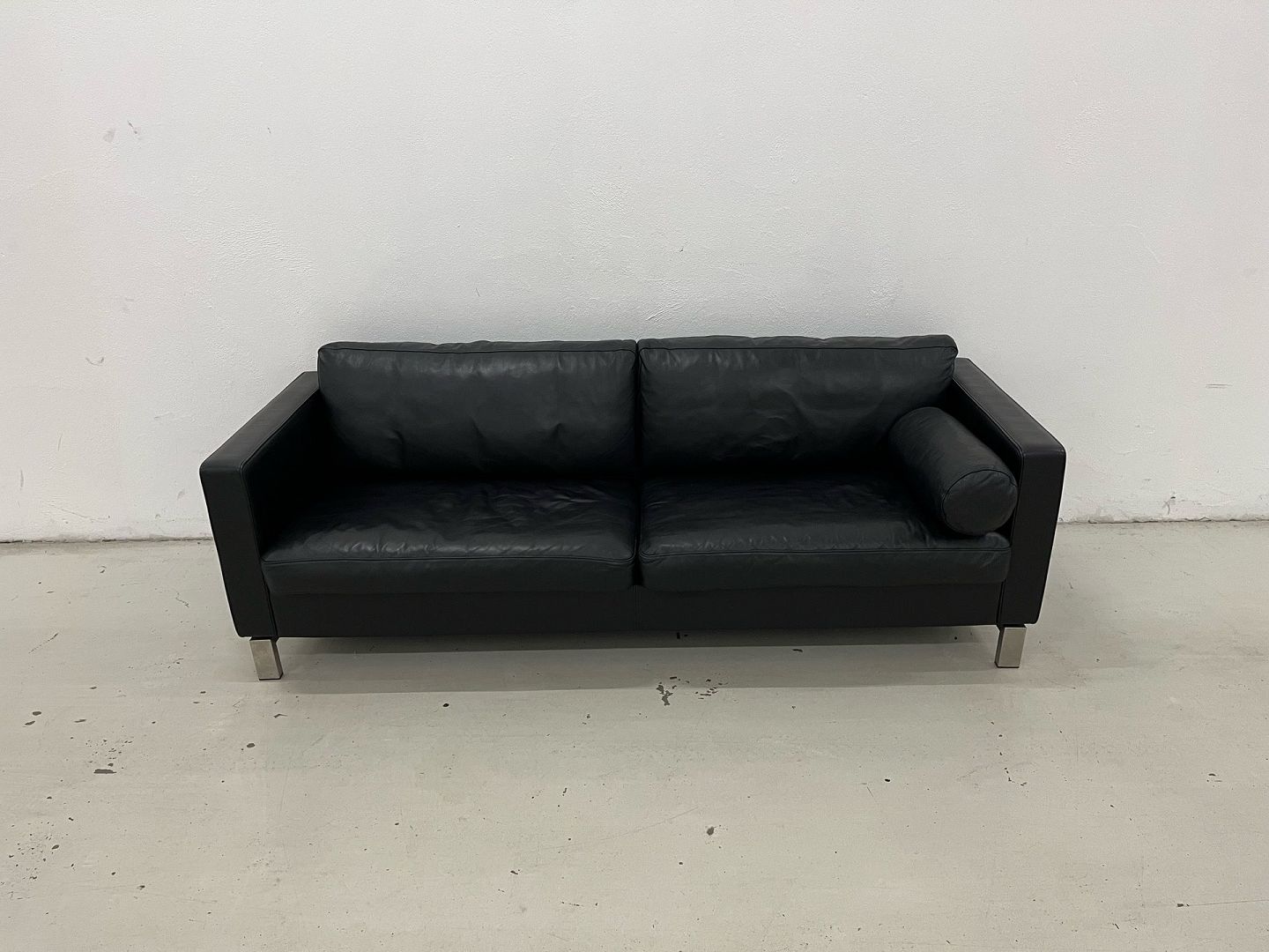 Mogens Hansen MH321. 3-Sitzer-Sofa in schwarzem Premium-Leder der Gruppe 2 mit Beinen aus gebürstetem Stahl. Neupreis 45.353,-
