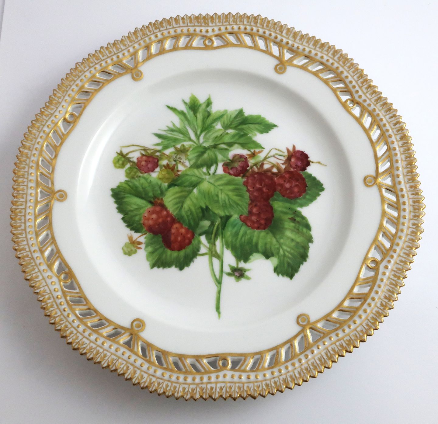 Royal Copenhagen Flora Danica, Obstteller. Mittagessen Platte mit durchbrochener kante. Entwurf # 429/3554. Durchmesser 23 cm. (1 Wahl).