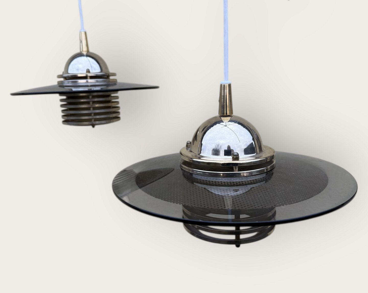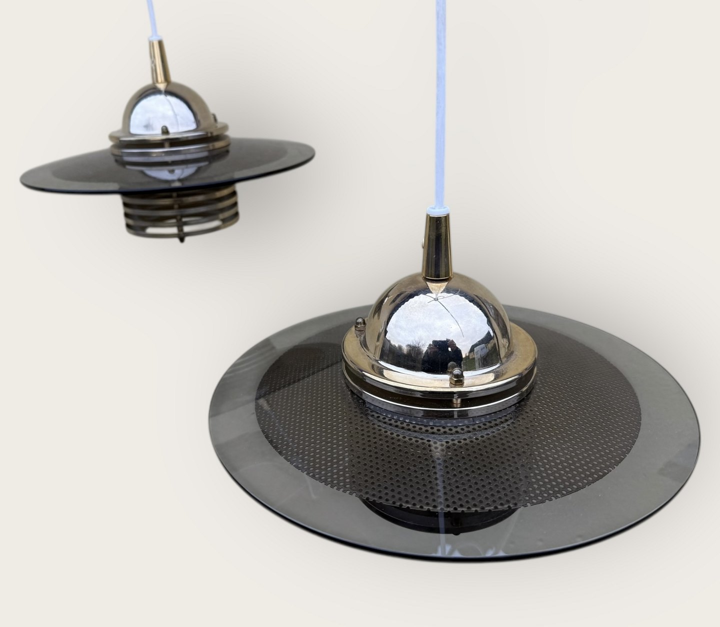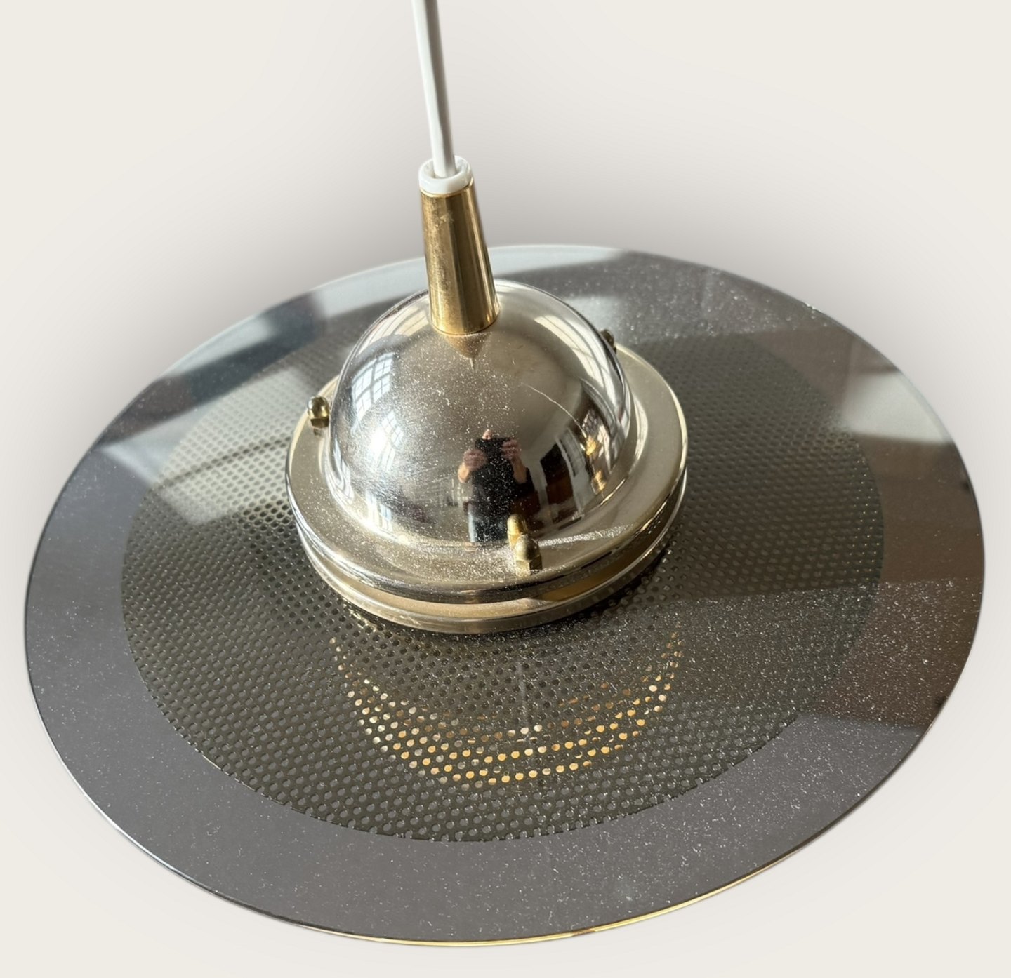 Jan-Eskild Eskildsson, Belid, Schweden, Reflektor-Deckenleuchte aus Rauchglas und Messing, Durchmesser 29 cm *guter Zustand*