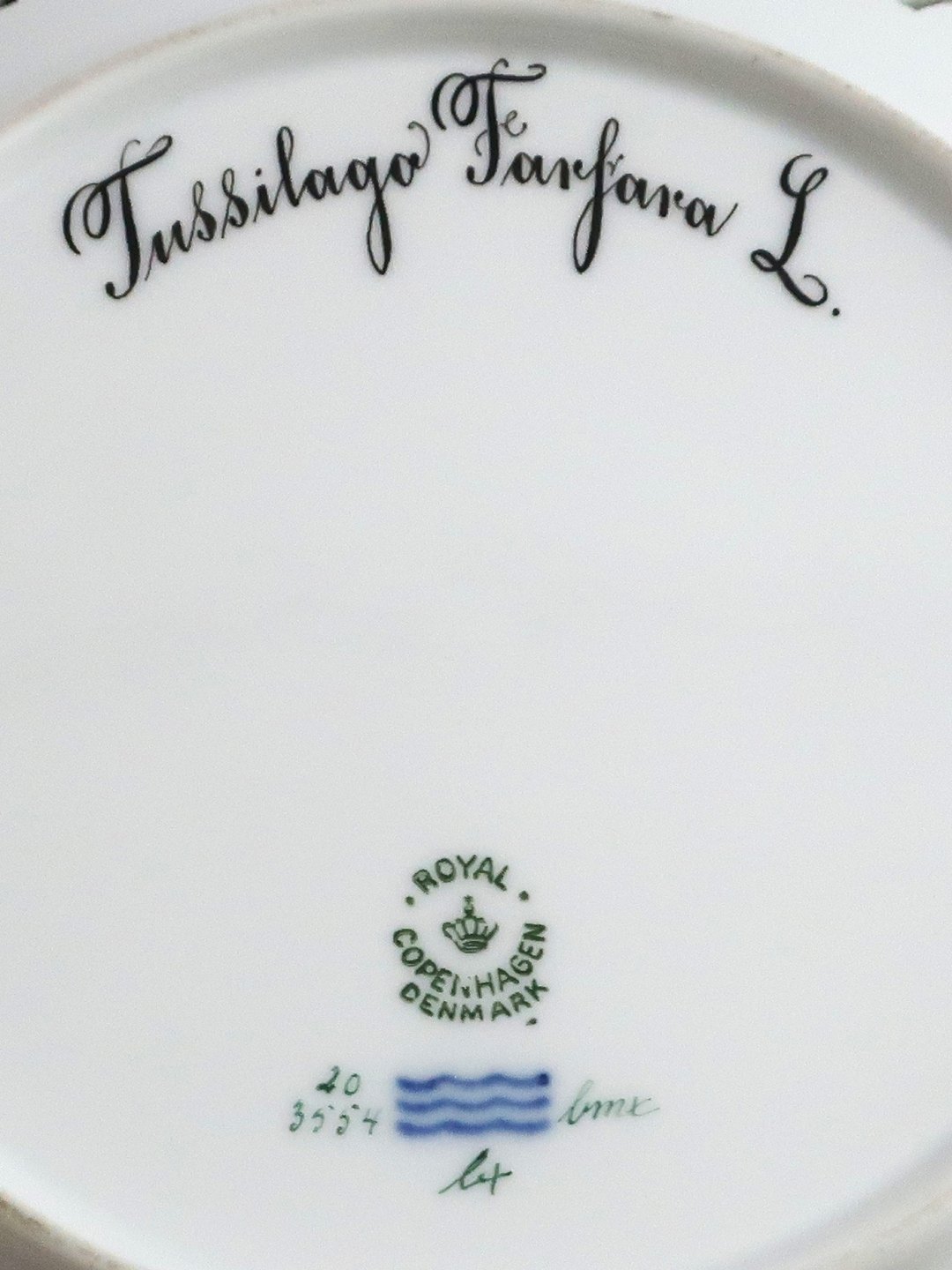 Royal Copenhagen Flora Danica. Mittagessen Platte mit durchbrochener kante. Entwurf # 3554. Durchmesser 23 cm. (1 Wahl). Tussilago farfara L