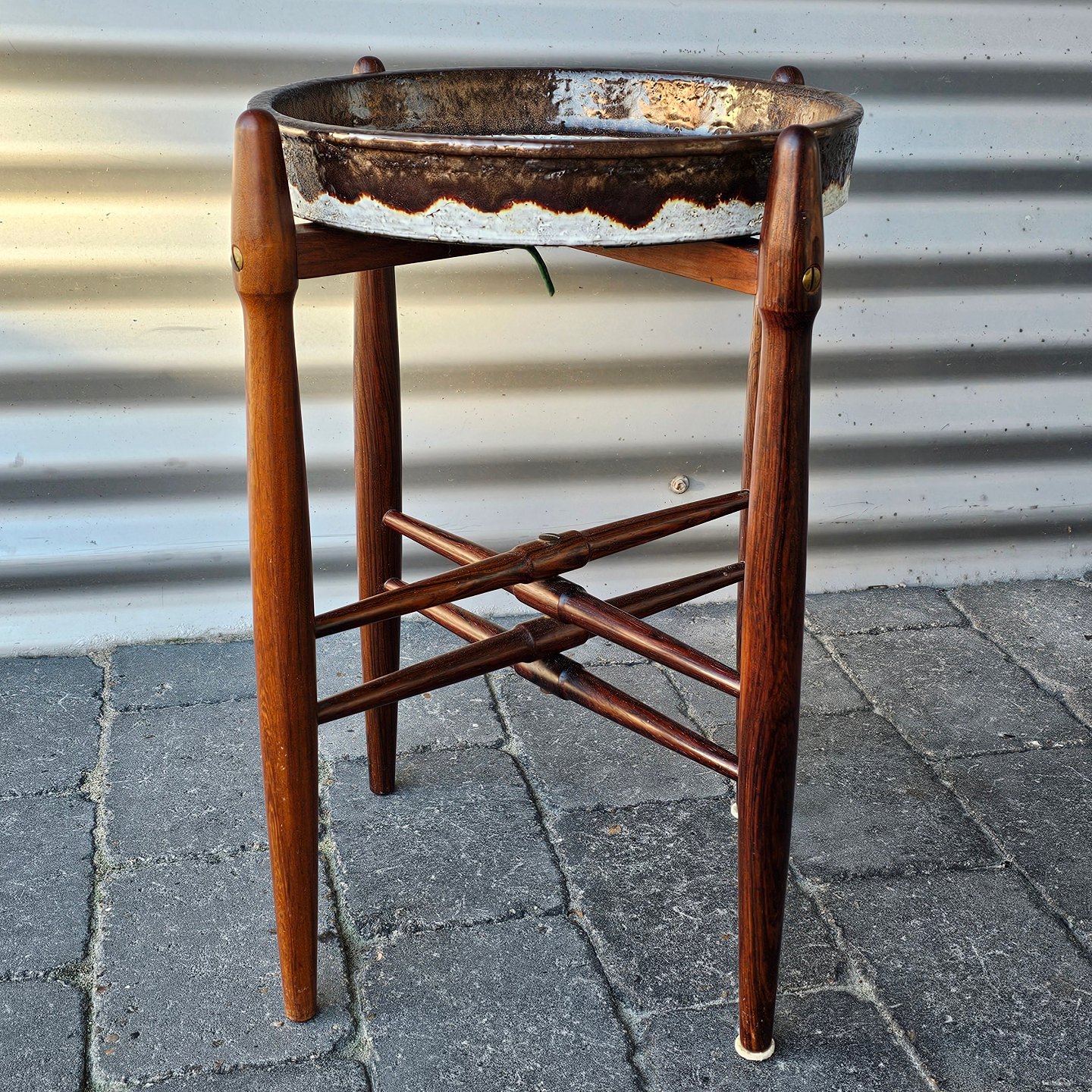 Rundt bord af palisander med rundt fad i keramik