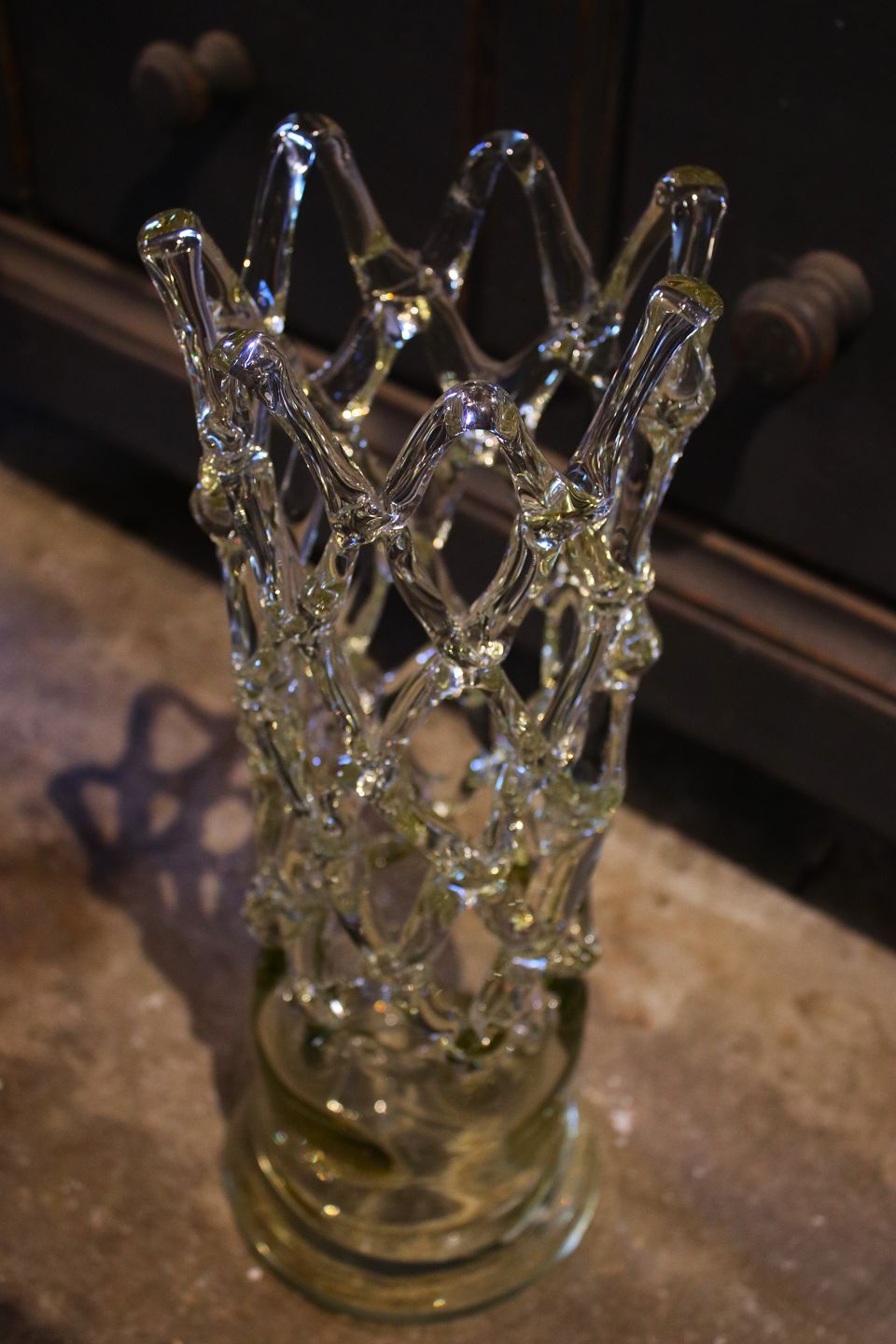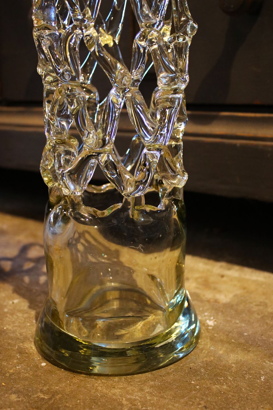 Fin gammel , dekorativ skulpturel mundblæst glasvase i sart grøn farve.