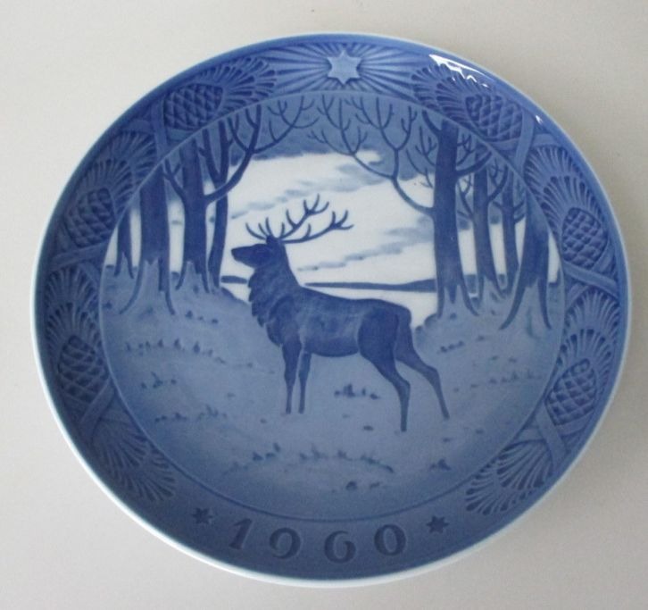 Royal Copenhagen, Weihnachtsteller 1960, Kopenhagen, Dänemark. Der Hirsch. Gestempelt. Durchmesser: 18,2 cm.