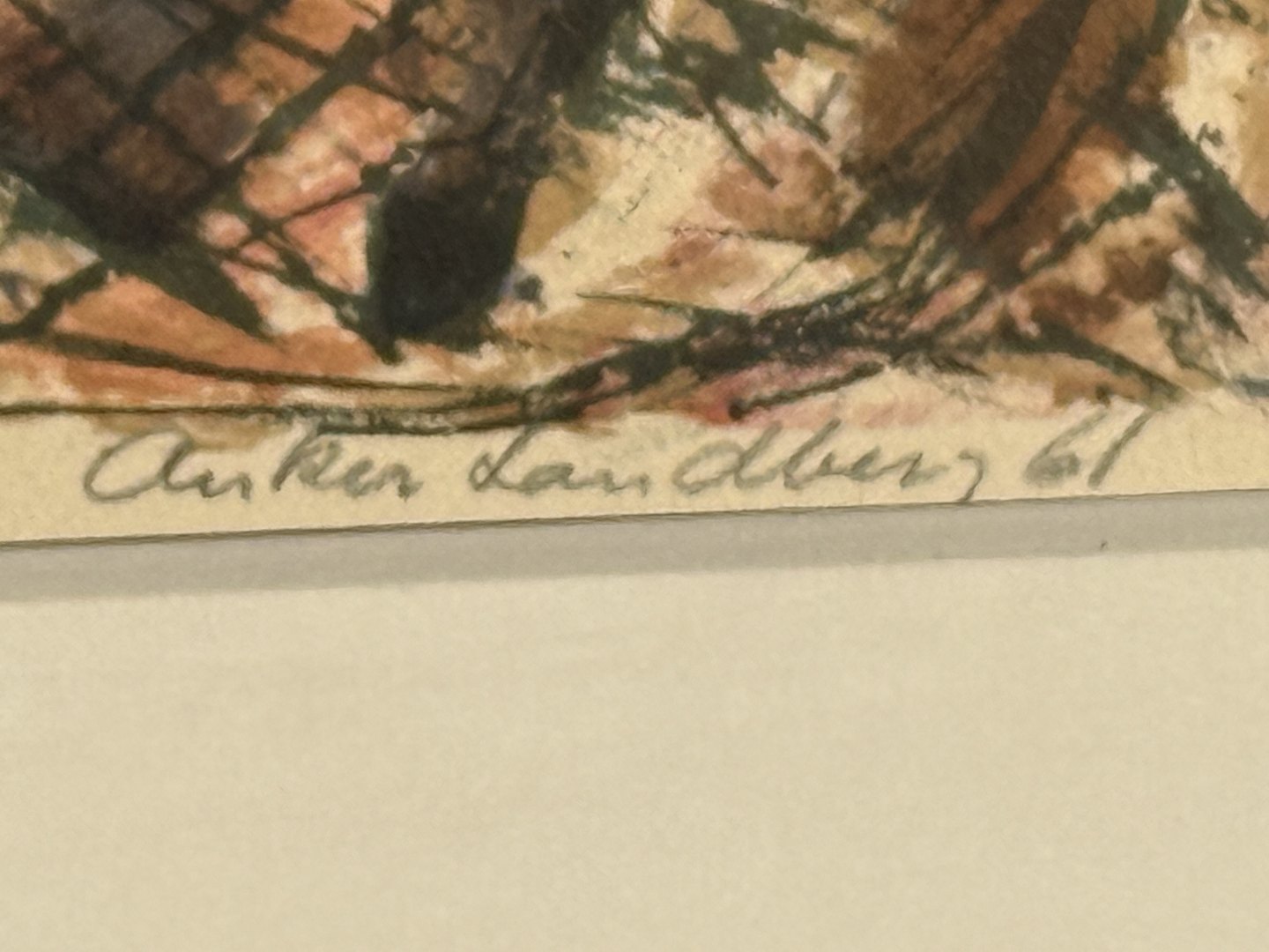 Anker Landberg, Lithografie im Rahmen, Fischer reparieren Netze, signiert Anker Landberg 61 und 31/100, Maße mit Rahmen: 66 x 48 cm *sehr guter Zustand*