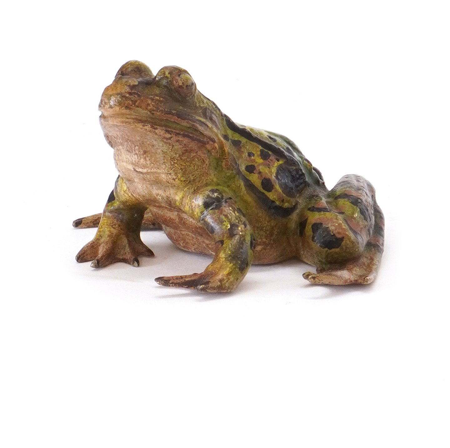 Polychrom dekorierte Wienerbronze in Form von einem Frosch