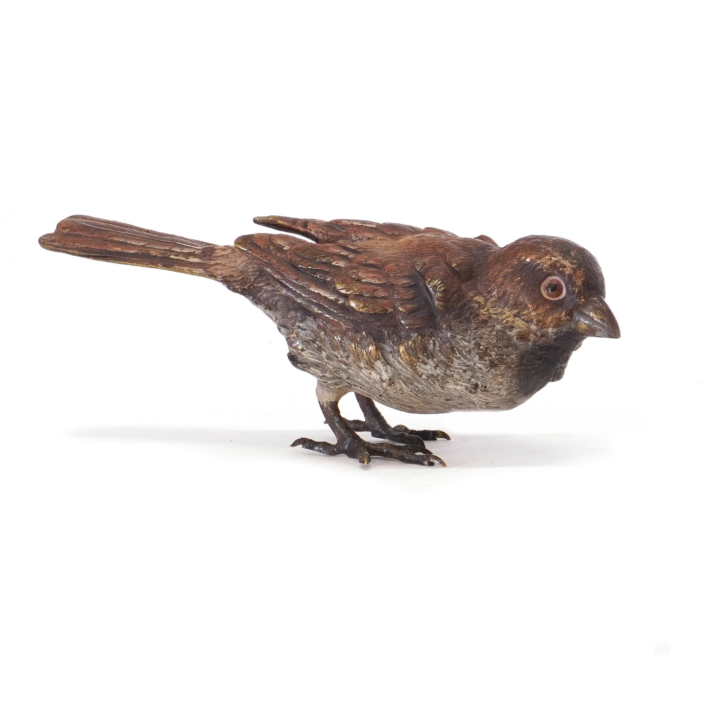 Polychrom dekorierte Wienerbronze in Form von einem Vogel