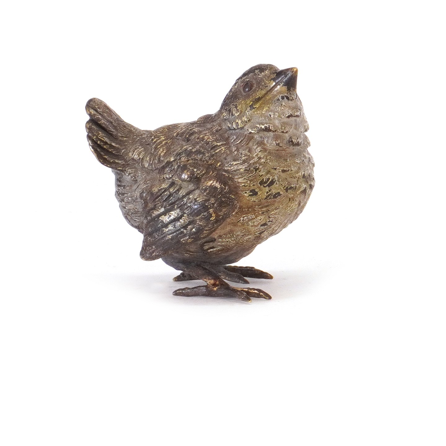 Polychrom dekorierte Wienerbronze in Form von einem Vogel