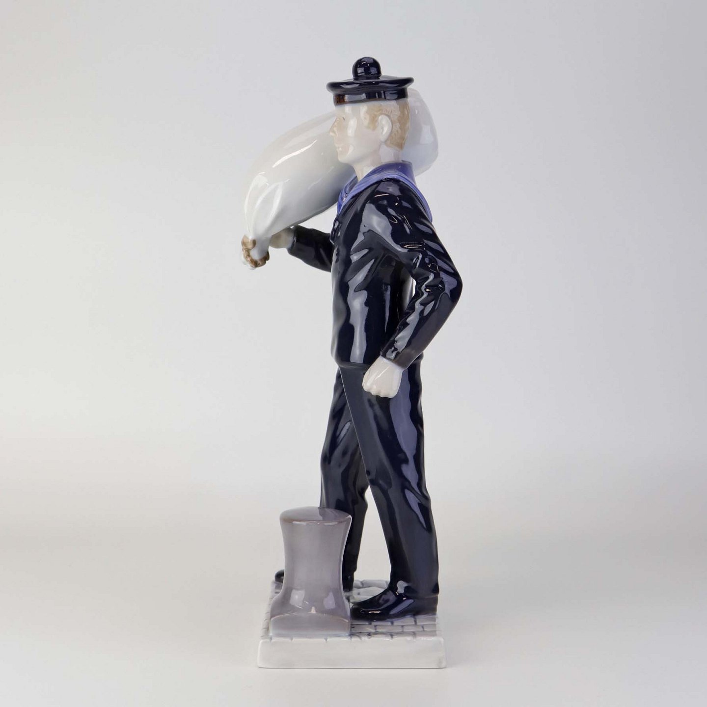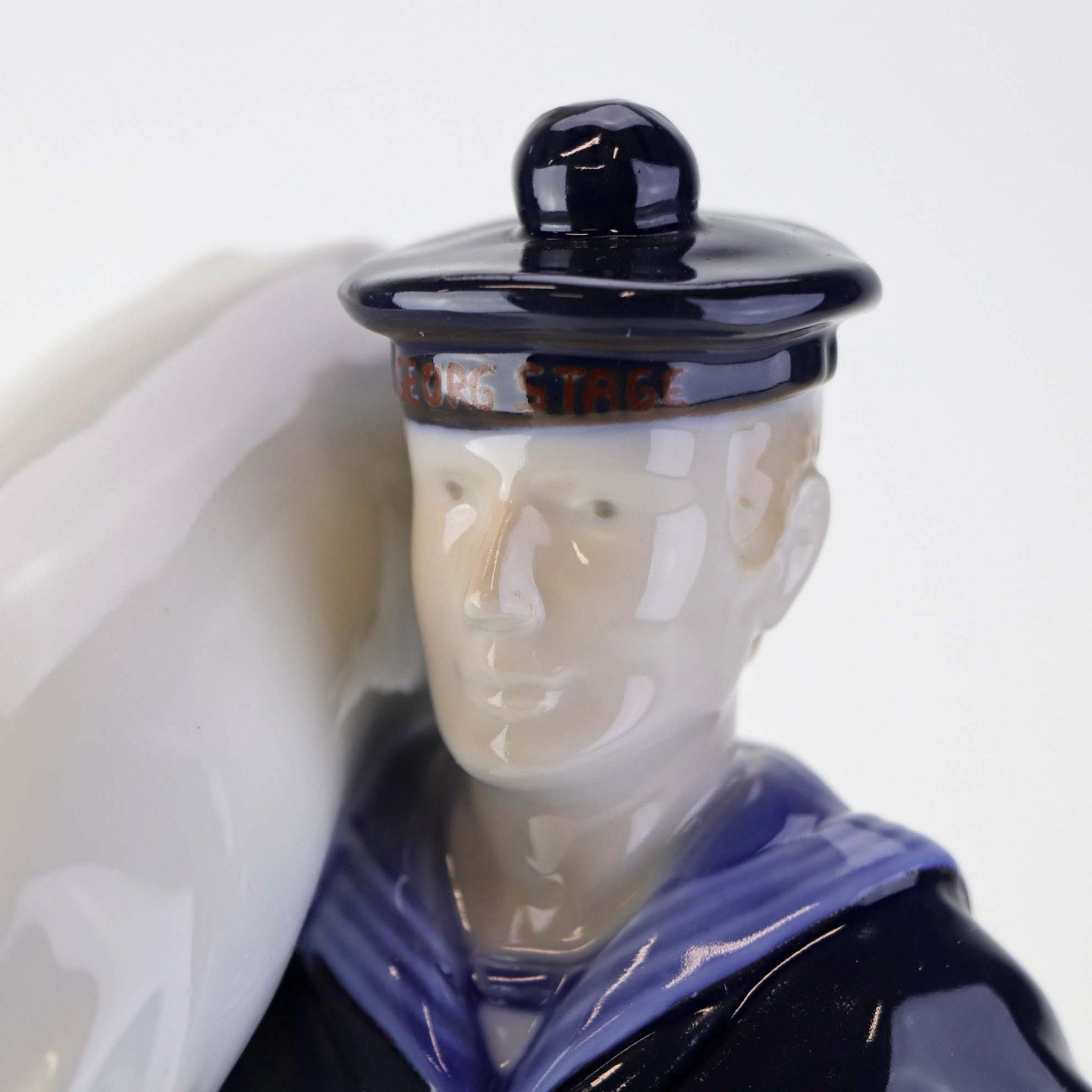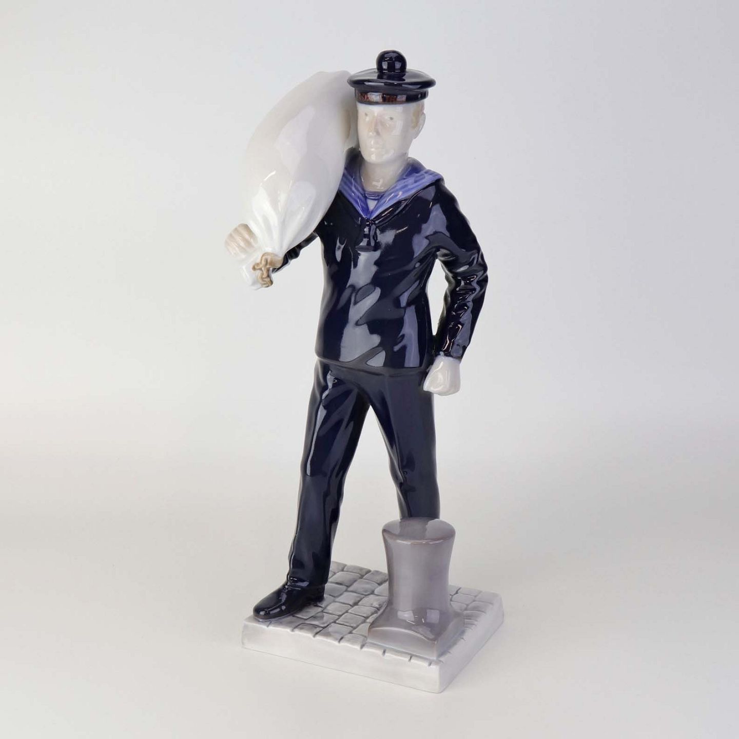 Text zugänglich auf Dänische: Figur i porcelæn med motiv af Matros med vadsæk fra skibet George Stage. Nr. 2456