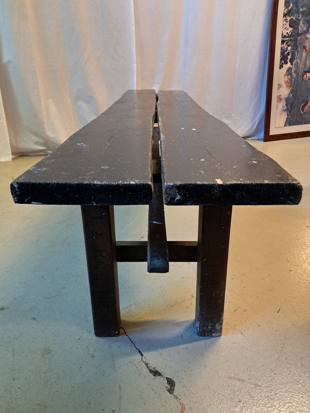 Malet bænk i massivt Fyrre og egetræ, fra 1950erne.