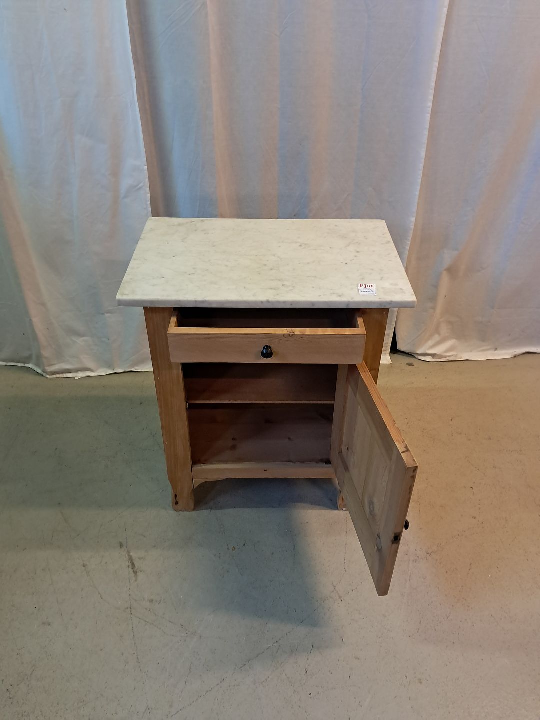 Servante i massivt fyrretræ med marmorplade, fra 1910erne.