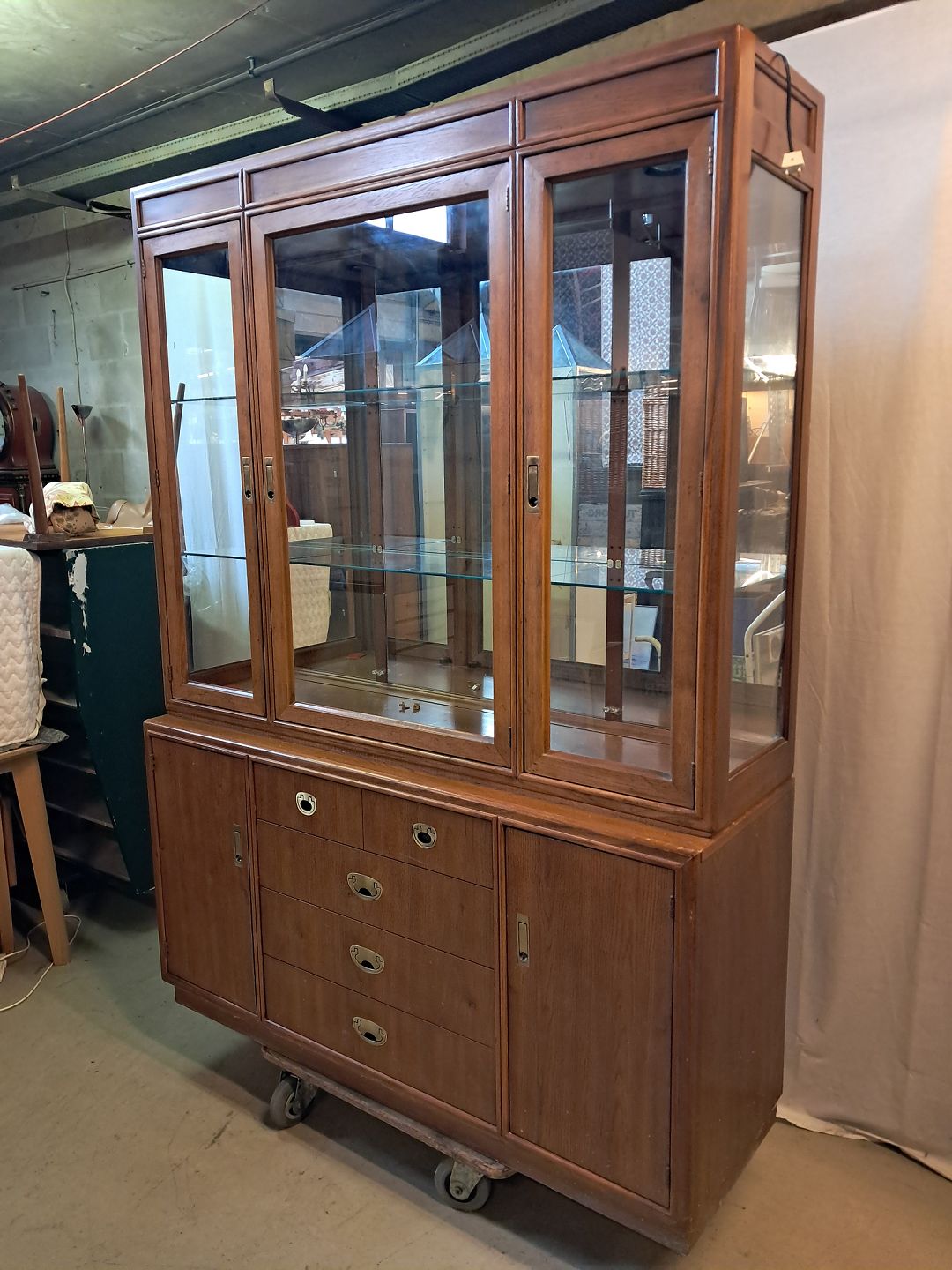 Amerikansk skab i fineret egetræ med glasoverdel, fra 1990erne.