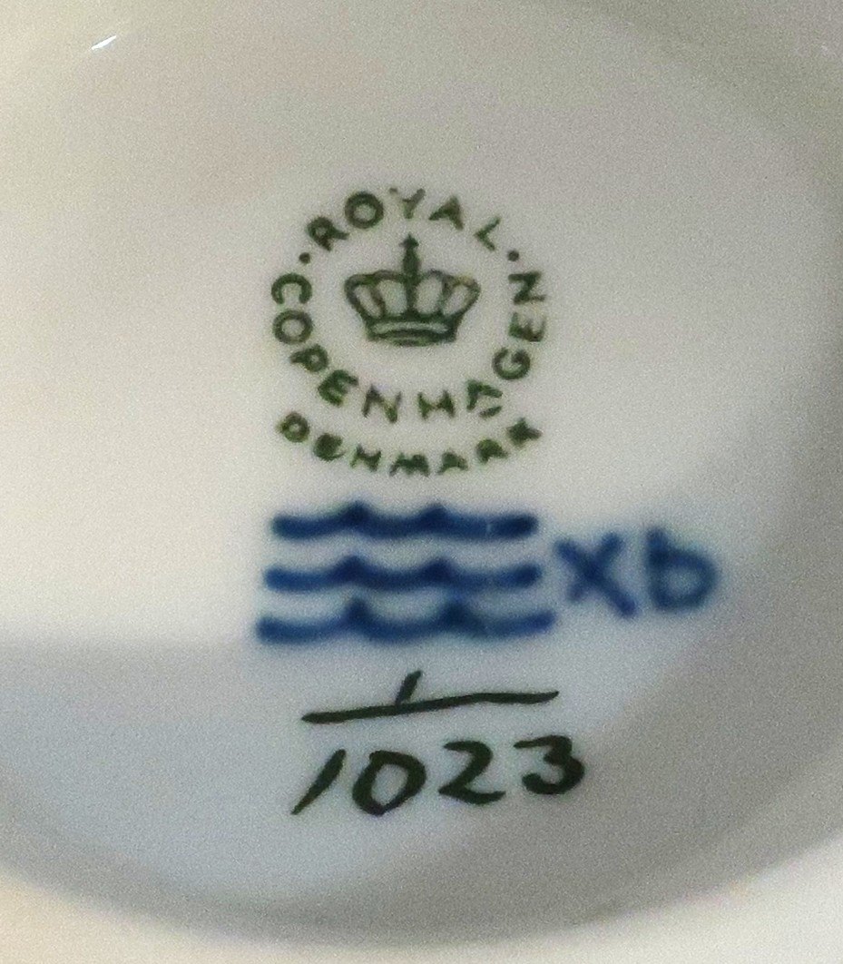 Königliches Kopenhagen. Musselmalet Vollspitze. Kleine runde Schüssel zu Fuß. Modell 1023. Höhe 6 cm. Durchmesser 17,5cm. (2 Wahl)