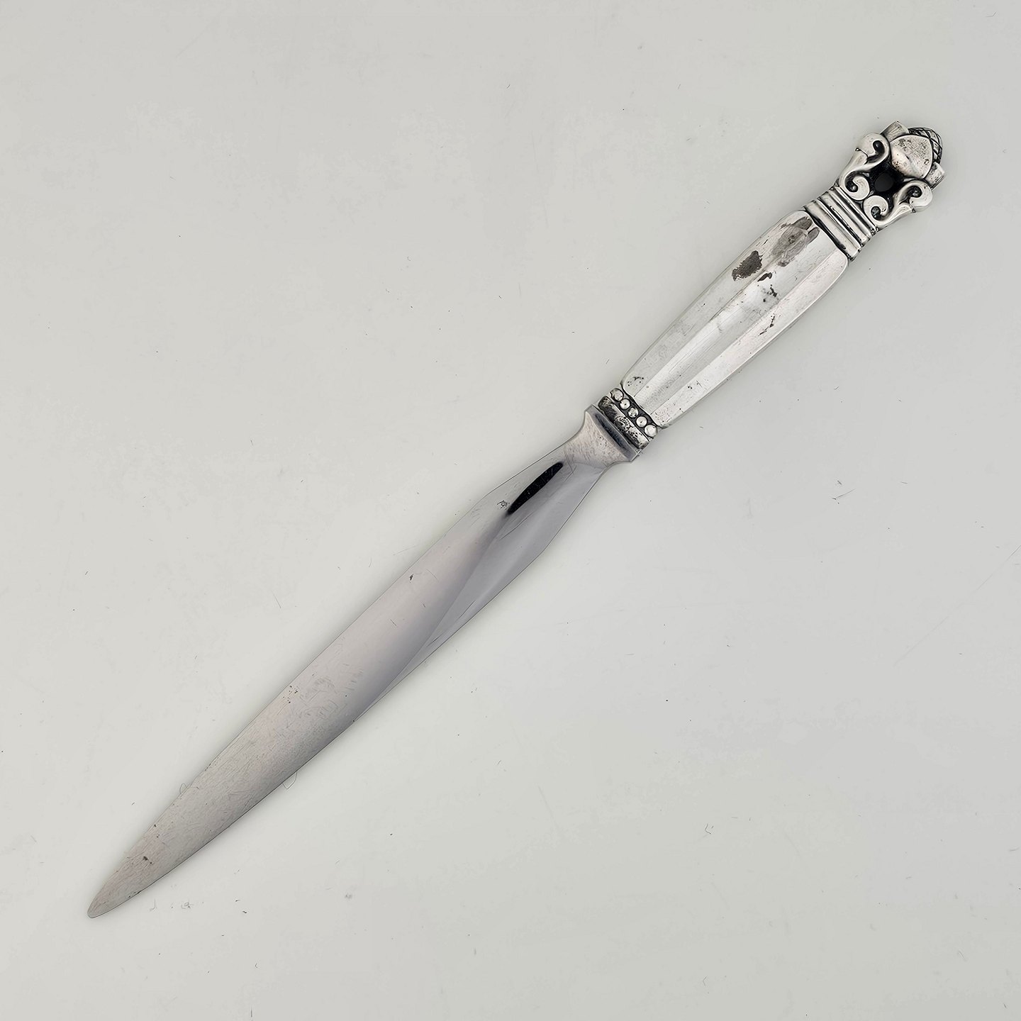 Kongemønster brevåbner med skæfte af sterling sølv 925 og knivsæg af rustfrit stål