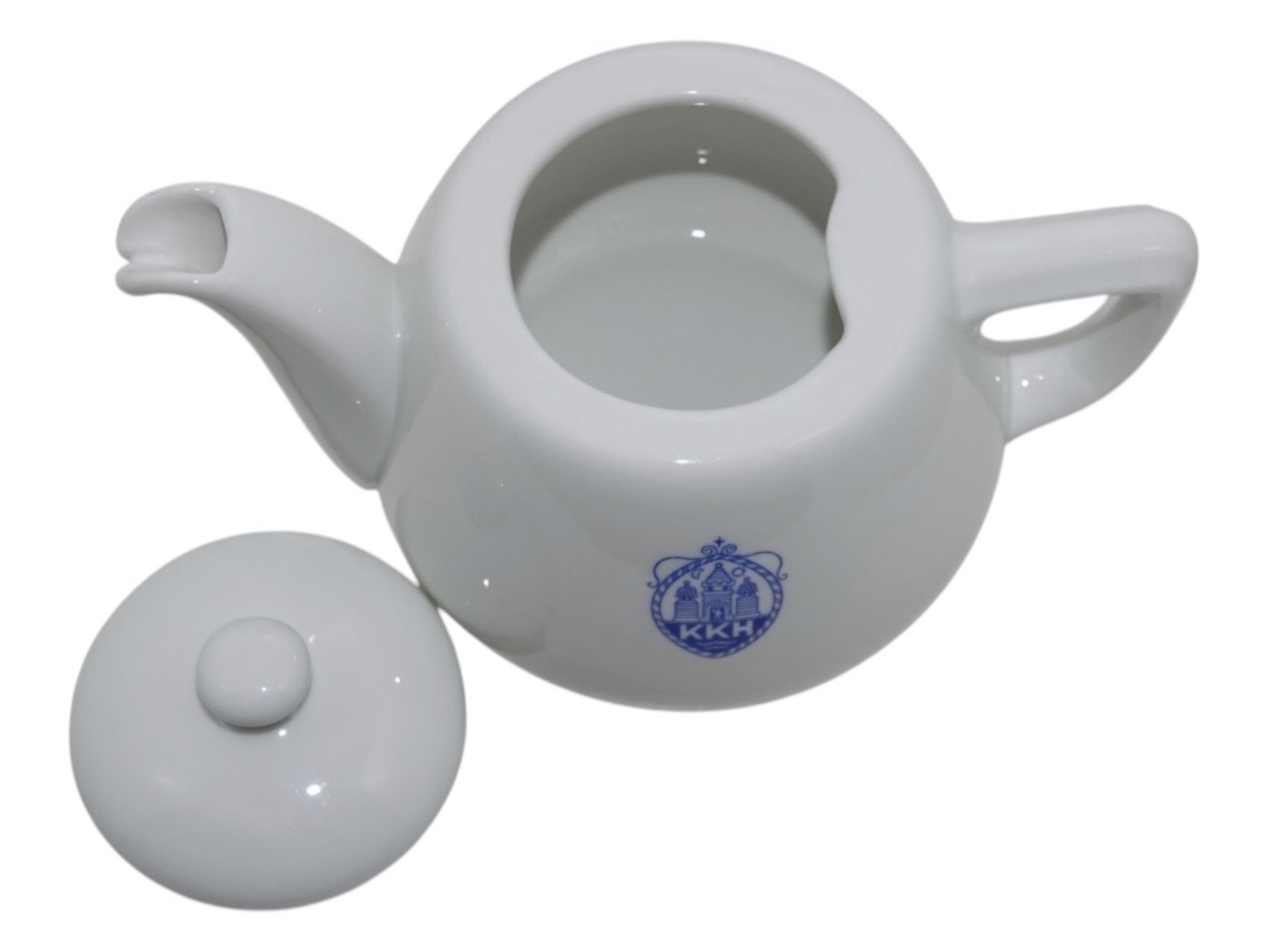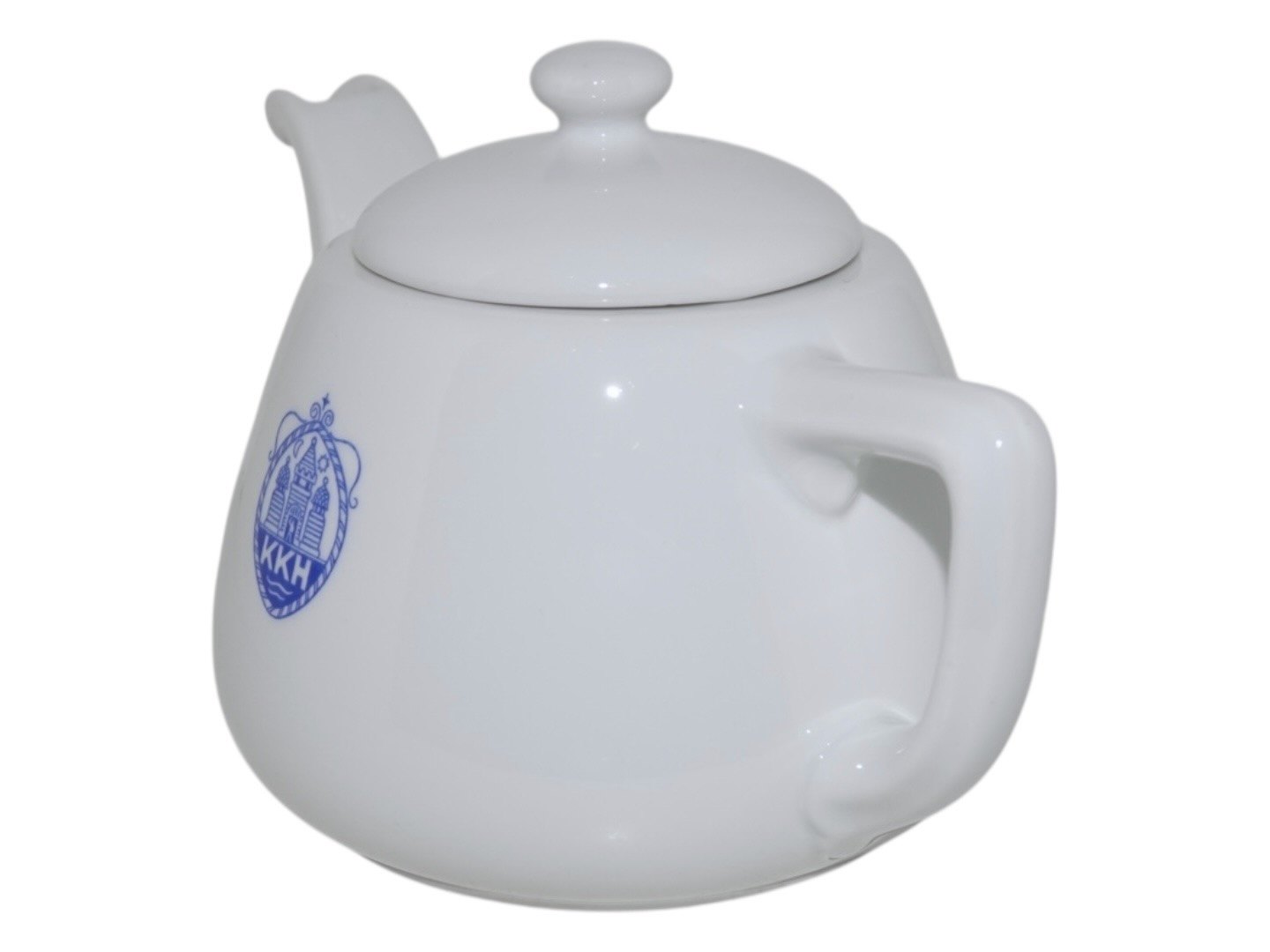 Royal Copenhagen, lille hvid tekande i tykt hotelporcelæn med logo fra Københavns Kommune Hospital (KKH).