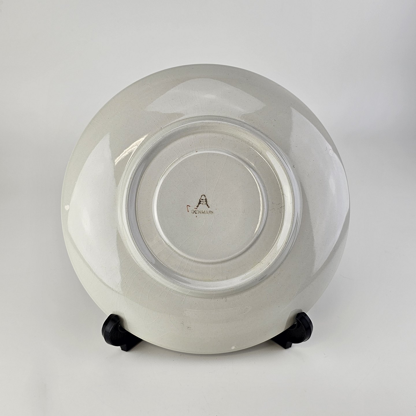 Tureby er stel i fajance dekoreret med rødt bånd og guldkant