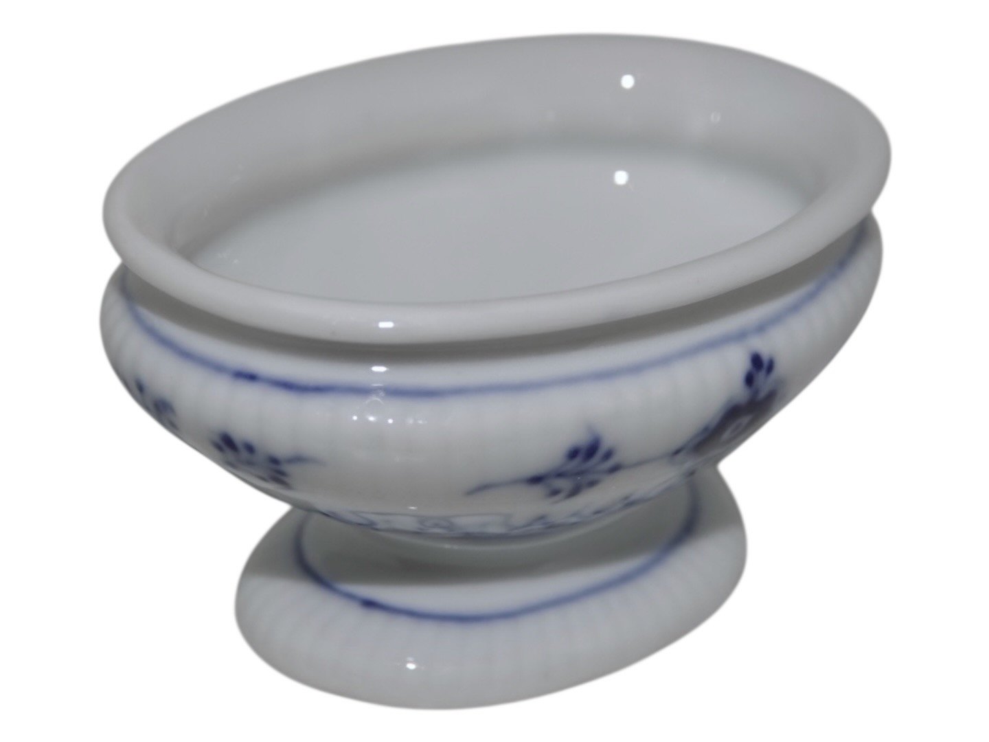 Royal Copenhagen Musselmalet Riflet, sjældent saltkar på fod.