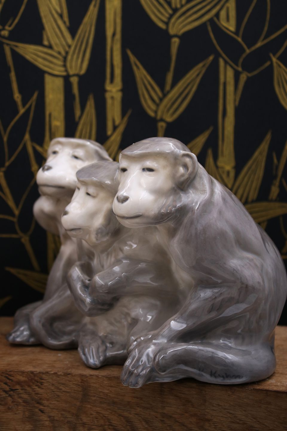 Royal Copenhagen porcelænsfigur af 3 aber , design af Knud Kyhn.