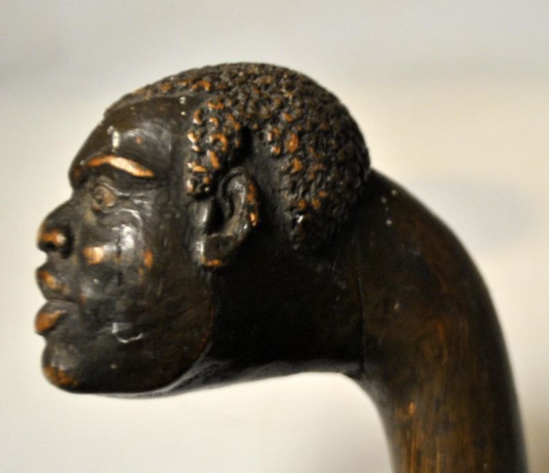 Spazierstock aus Holz mit geschnitztem Gesicht, 19. Jahrhundert.