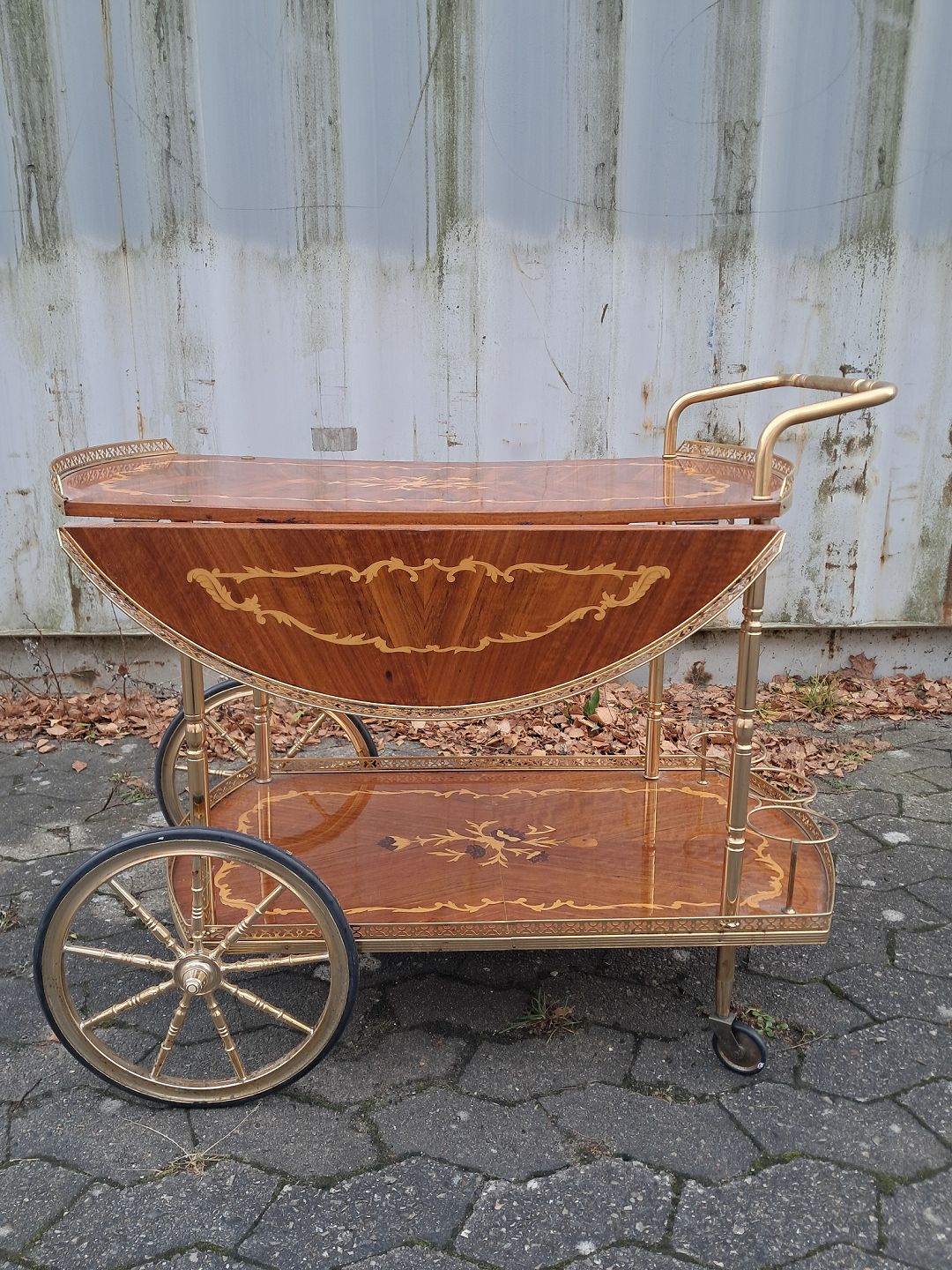 Barbord i fineret mahogni og metal, fra 1980erne.