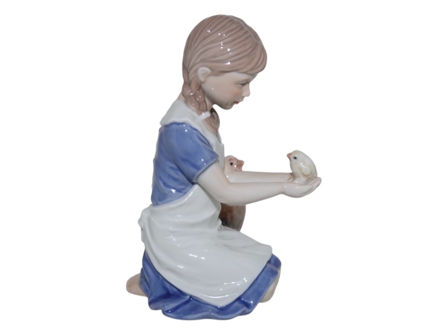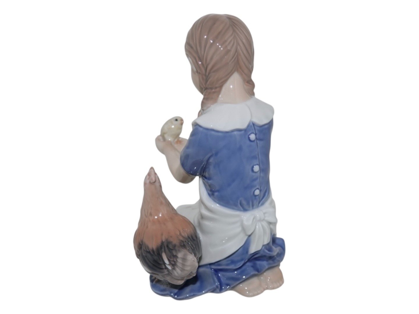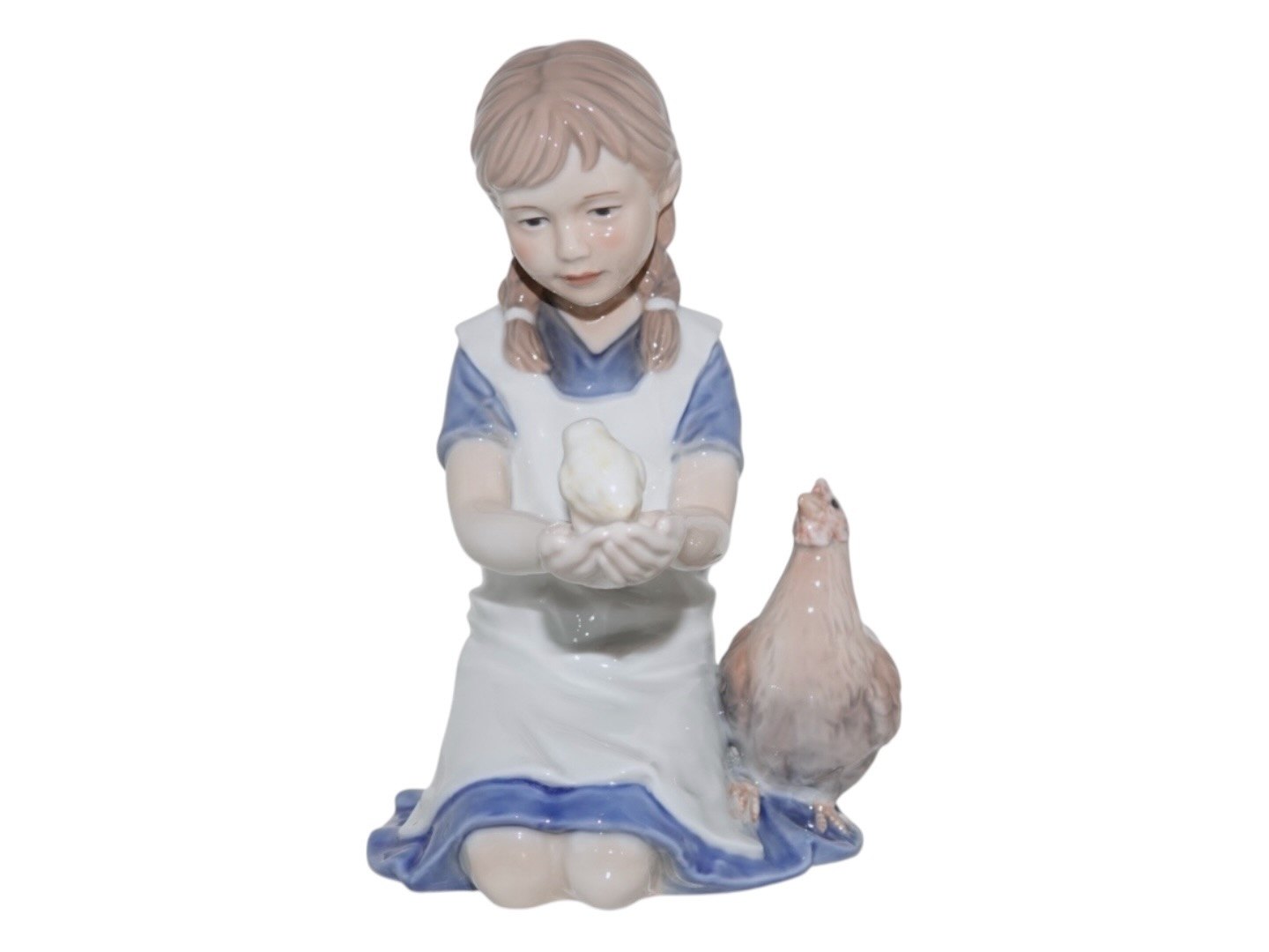 Større Royal Copenhagen figur, pige med høne og kylling.