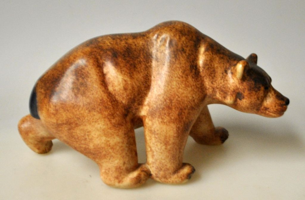 Hald, Peder (1892 - 1987) Dänemark: Ein Bär. 5975. Braun glasiertes Steinzeug. Hergestellt für Micahel Andersen & Søn, Bornholm. Signiert: HALD. L.: 23 cm. H.: 13 cm.