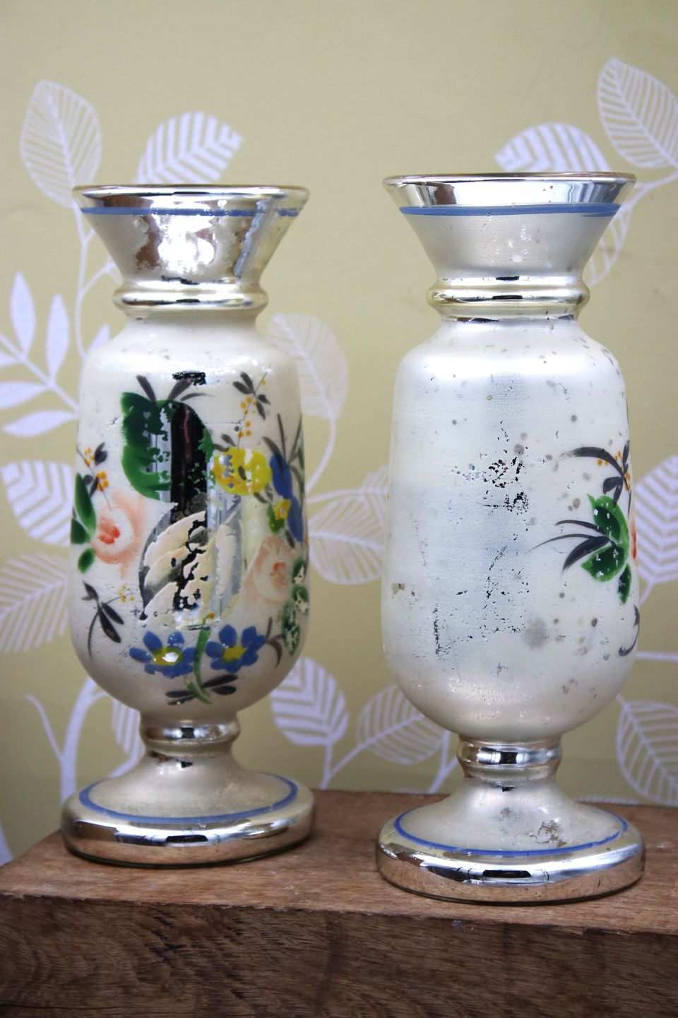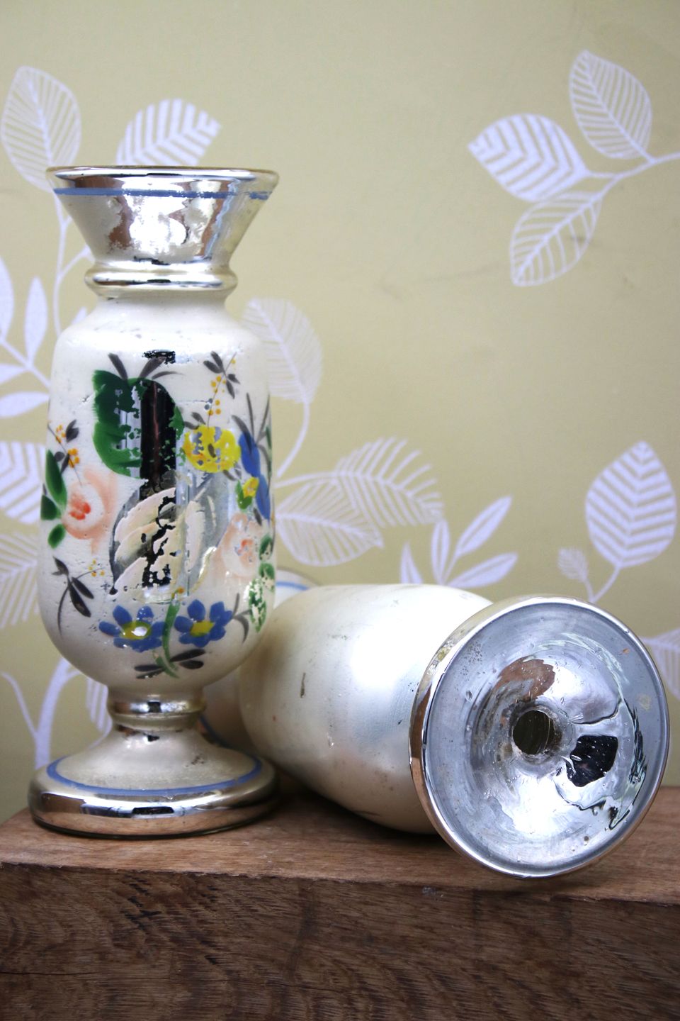 1800 tals vaser i fattigmandssølv dekoreret med håndmalet blomster motiver...