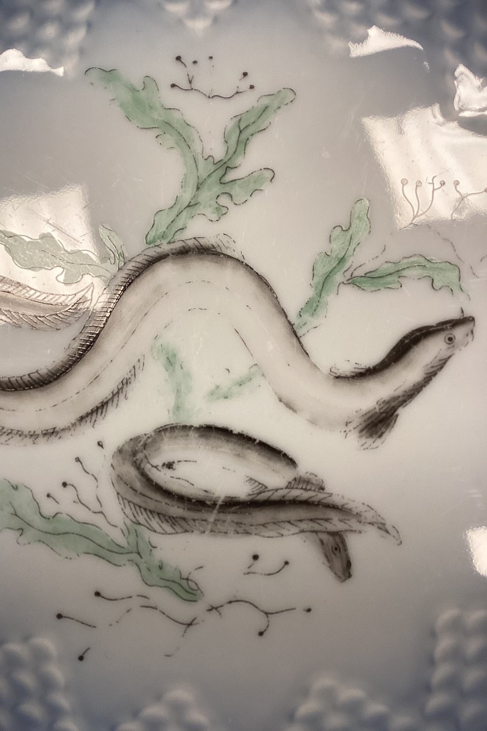 Bing og Grøndahl Blå Tone Fisketallerken Motiv 8 Aal No. 716 - SKÅRET/SLIDT