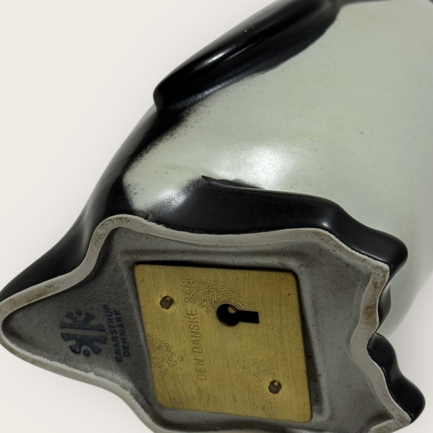 | Knabstrup-Keramik, Pinguin-Spardose, Pondus, hergestellt für die Den Danske Bank, 27 cm hoch, guter Zustand, aber Schlüssel fehlt.
