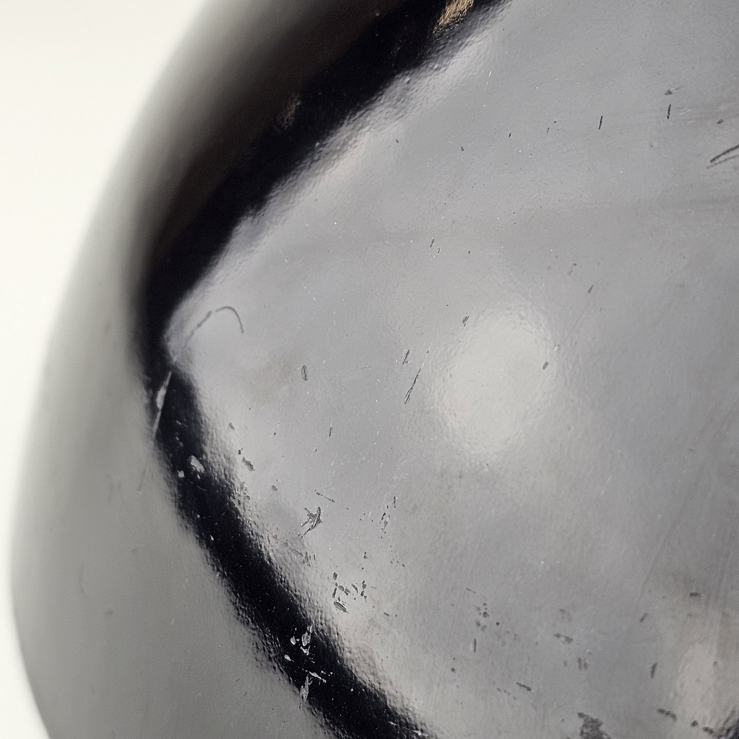 Text zugänglich auf Dänische: Krenit skål af sort metal med sort emalje indvendigt og udvendigt