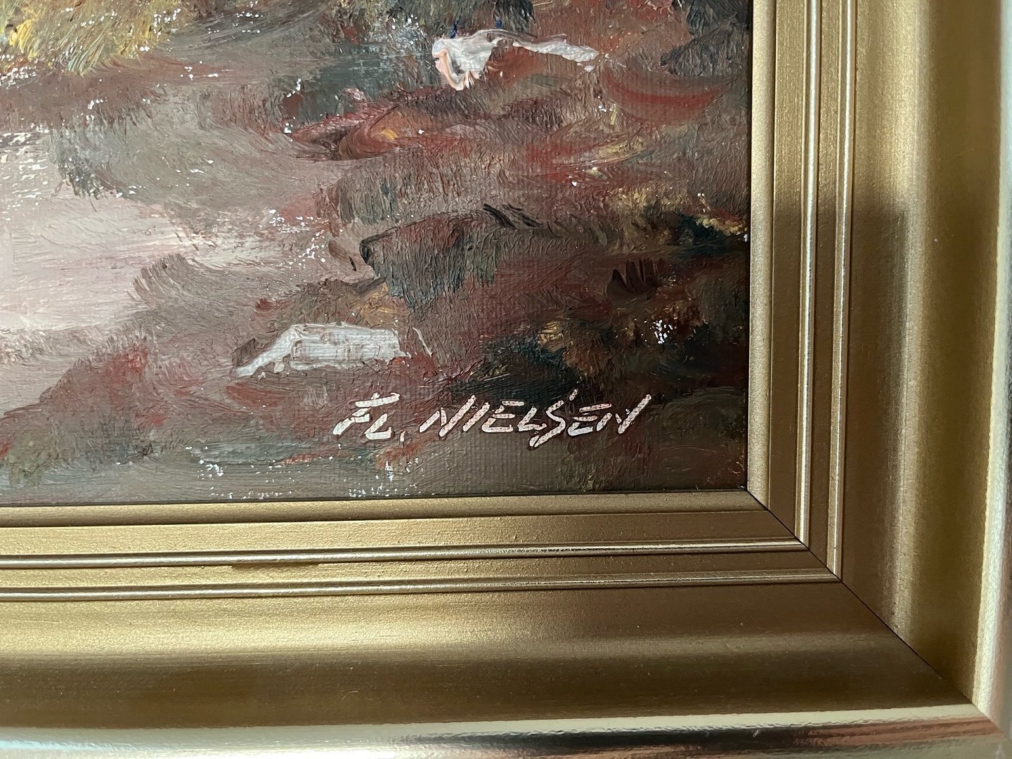 Ölgemälde von Flemming Nielsen. Das Gemälde ist ein Ölgemälde, signiert vom renommierten dänischen Künstler Flemming Nielsen (auch bekannt als Flemming Flev Nielsen).