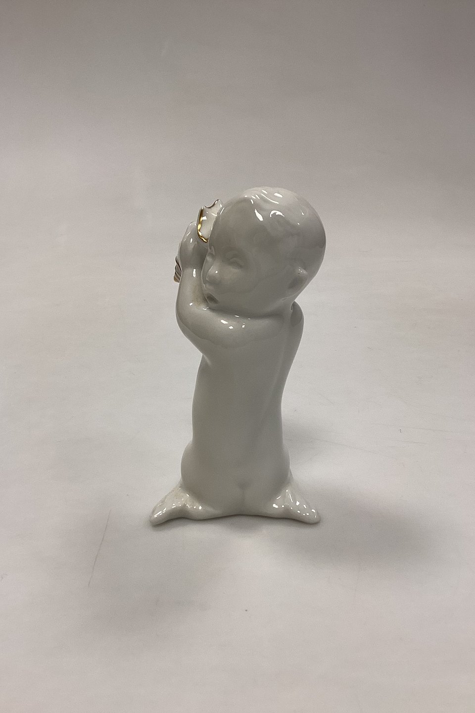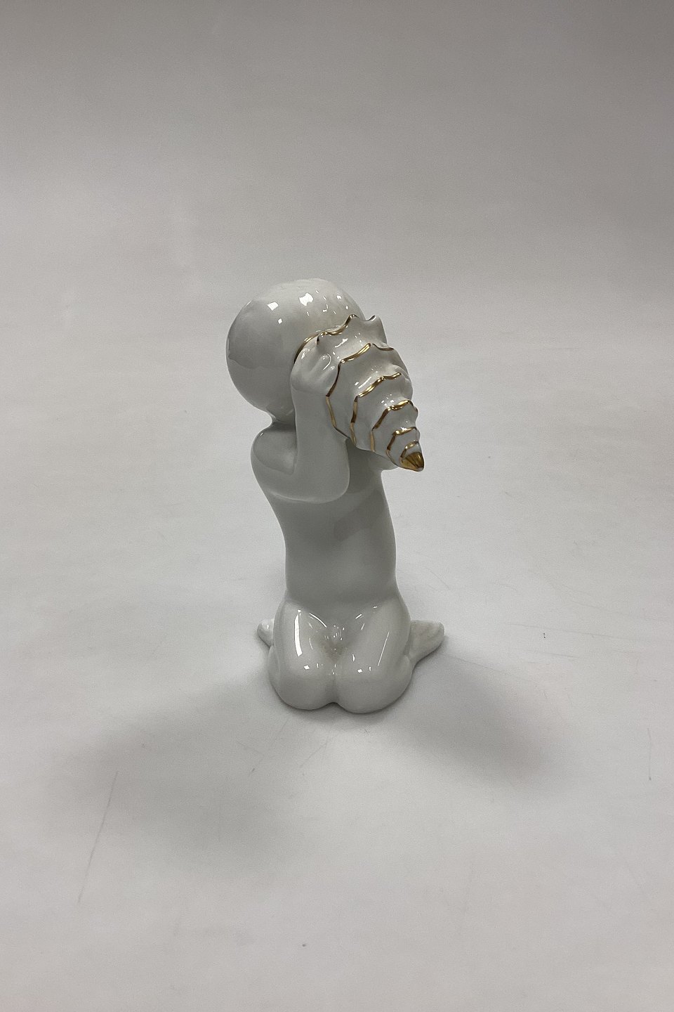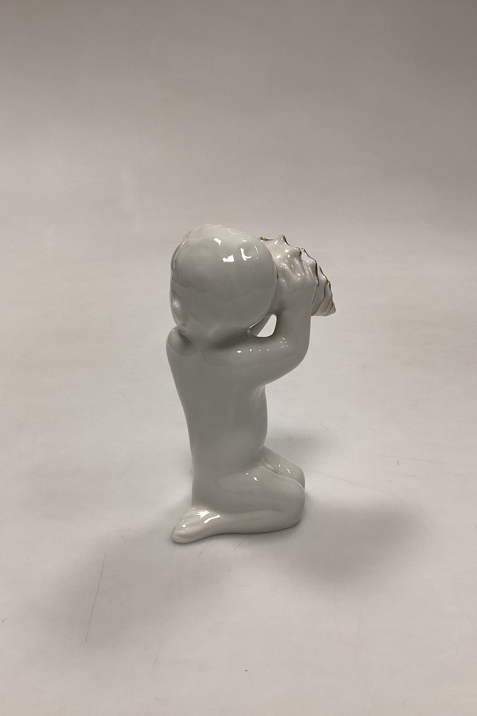 Bing og Grøndahl Figur - Havbarn med konkylie No. 2264. Blanc de Chine porcelæn med guld. Designet af Ebbe Sadolin/Svend Jespersen.