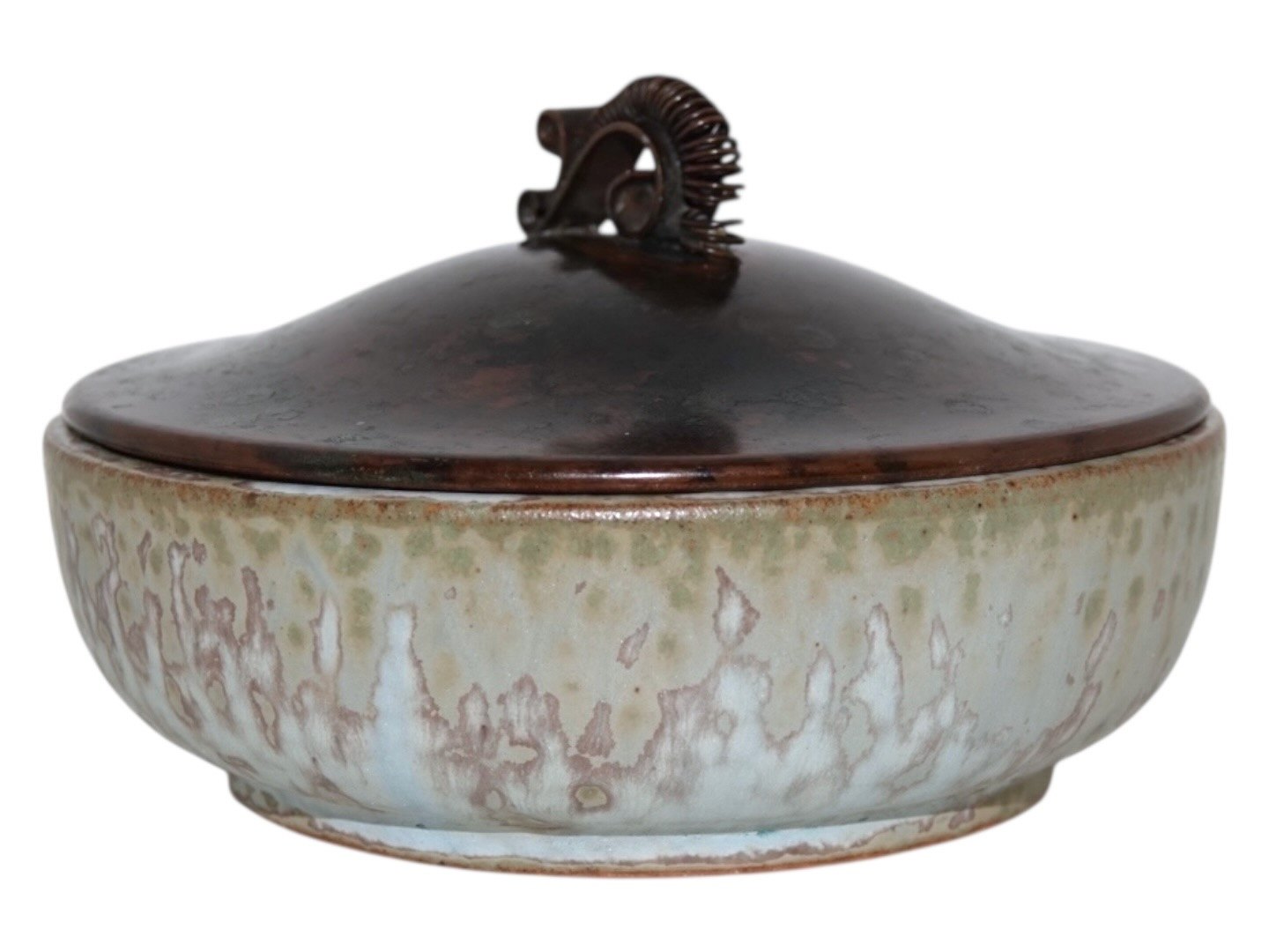 Arne Bang keramik, skål med en flot glasur samt originalt bronzelåg.