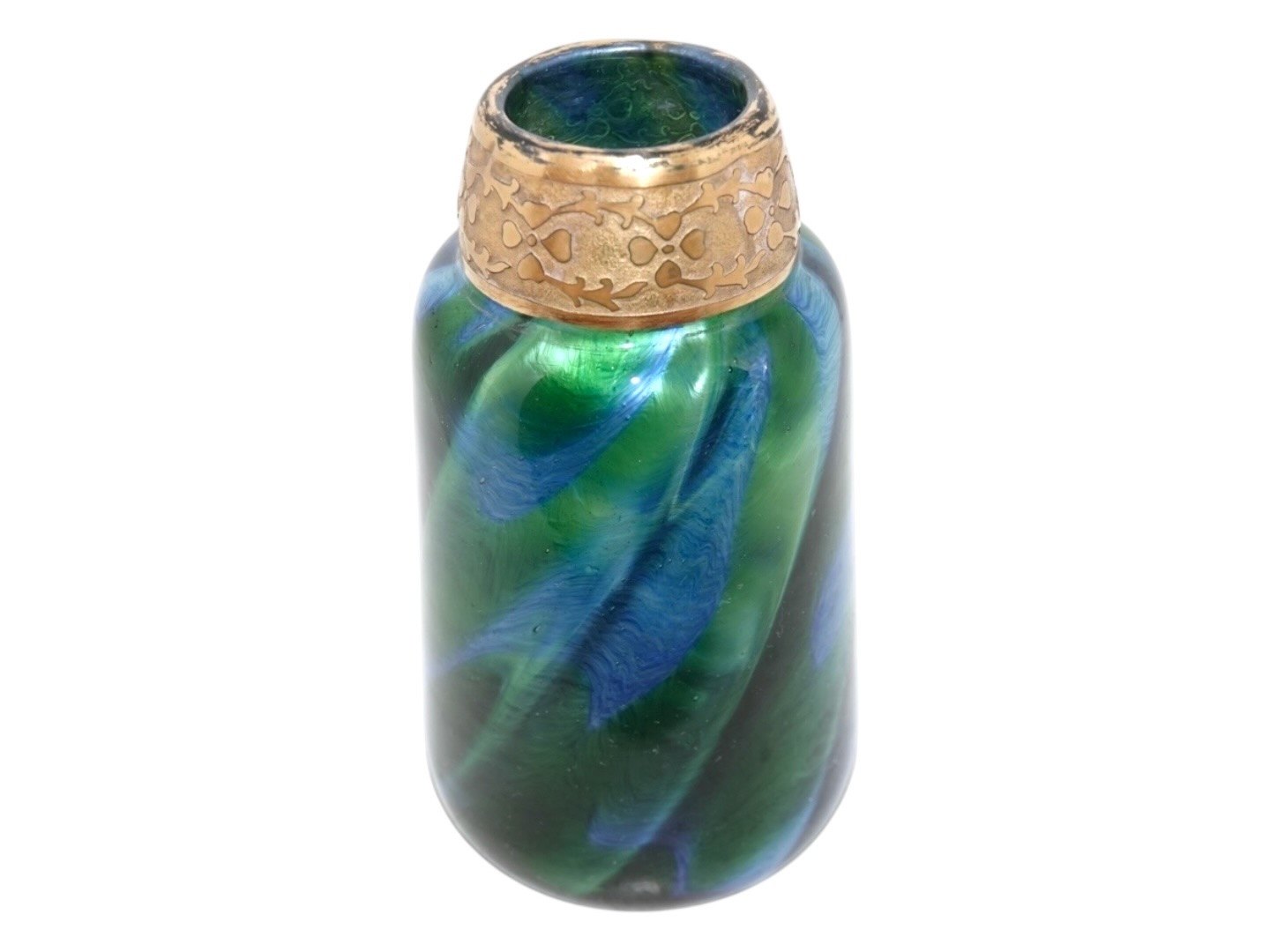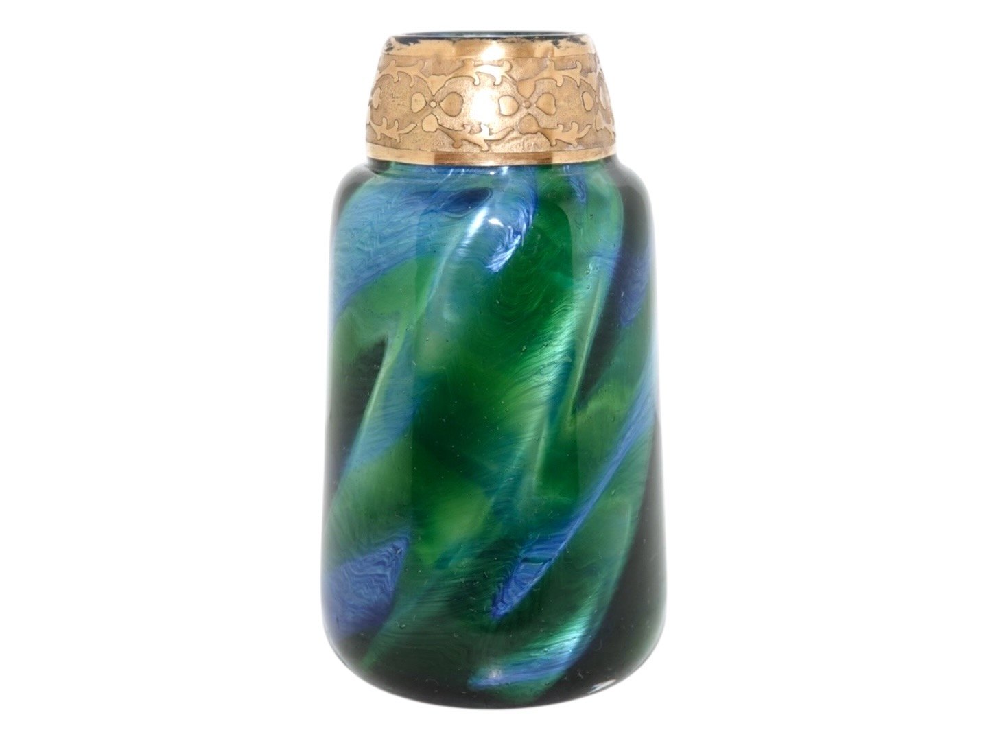 Bohemisk glas vase med grønne og blå farver fra omkring 1900 til 1920.