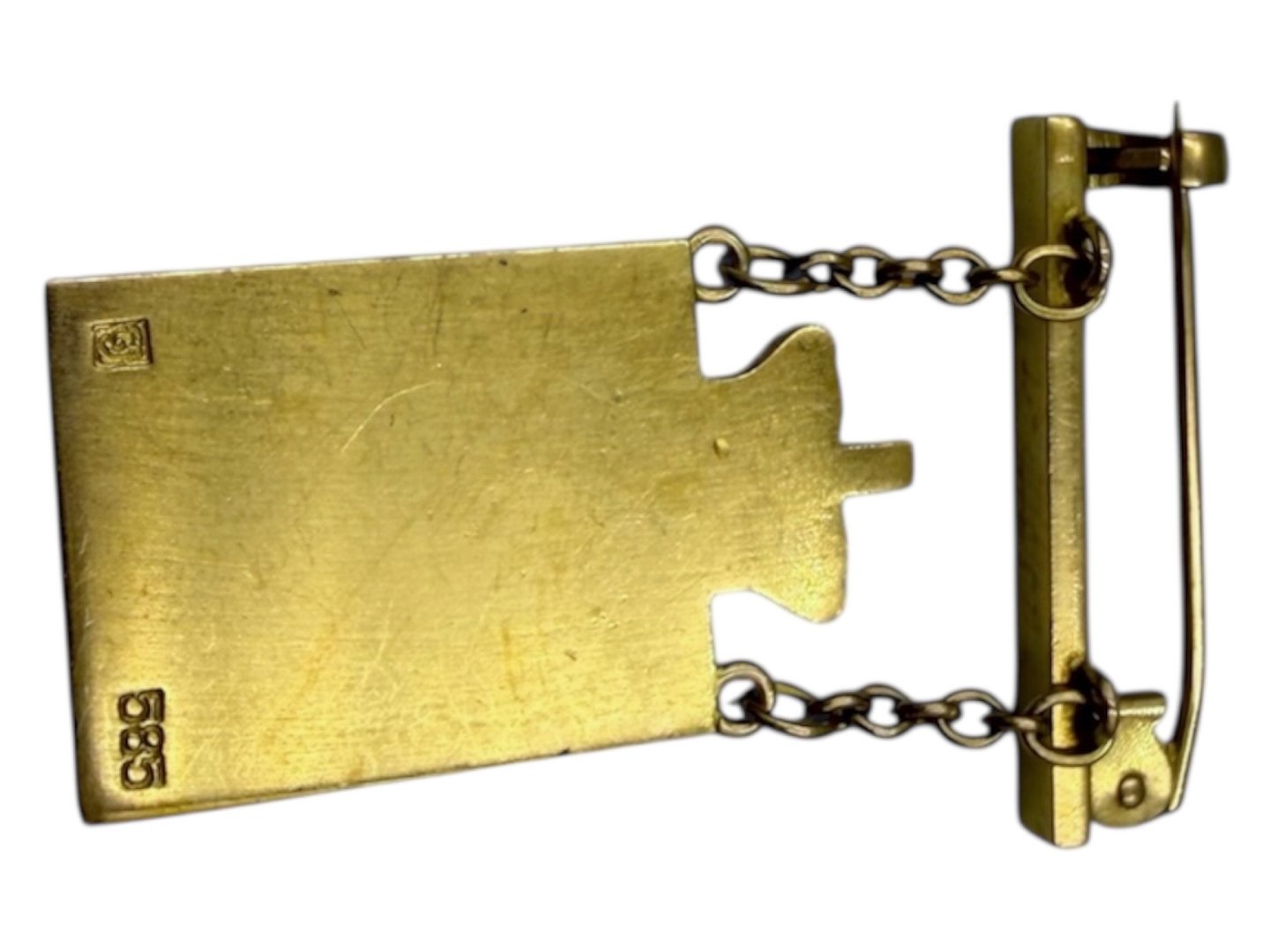 Kongemærke broche i 14 karat guld med bjælke 1870-1945