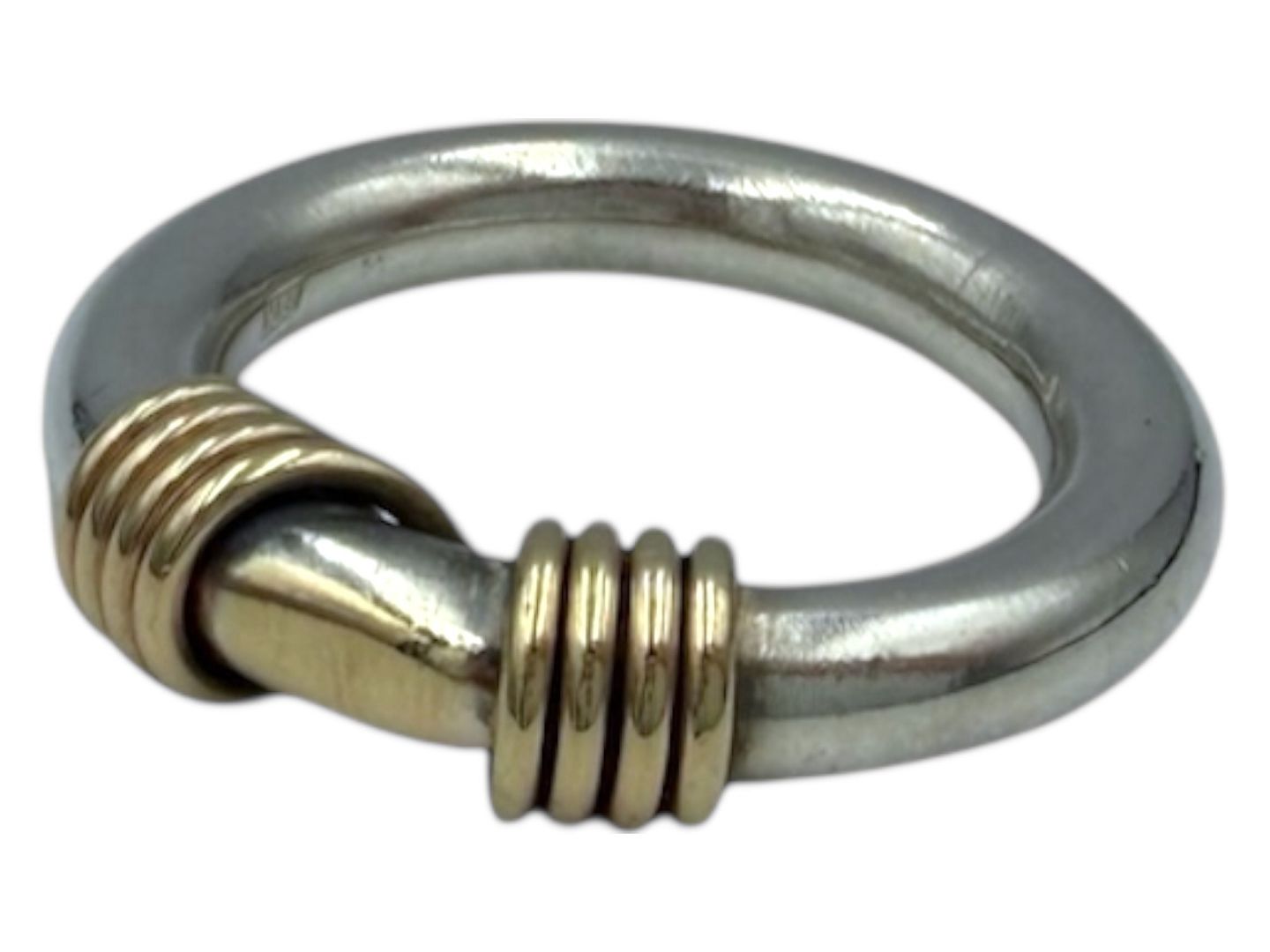Sterlingsølv og 14 karat guld, ring med snoet guld.