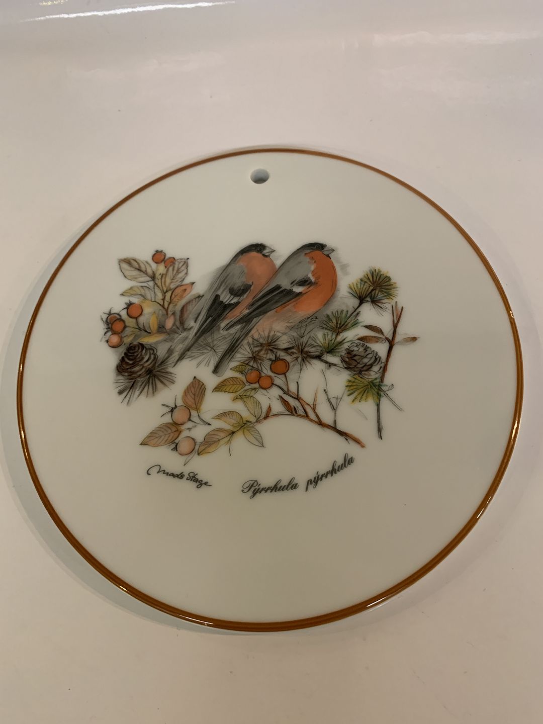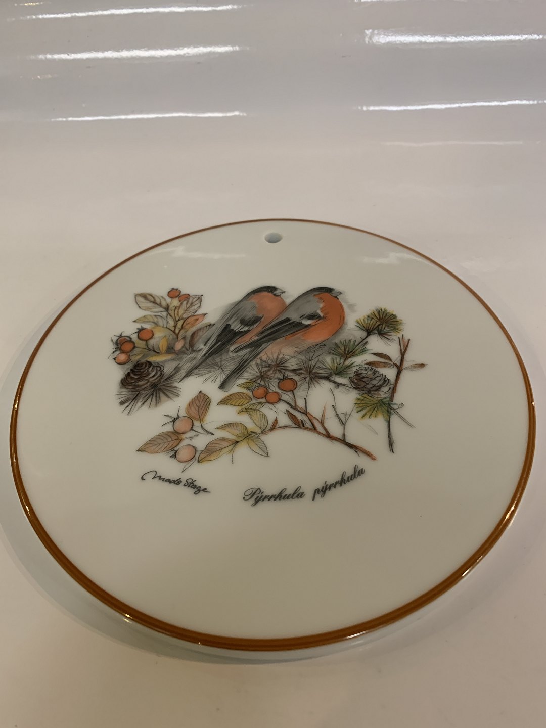 Jagtstellet Mads Stage Smørebrik / Platte, (Pyrrhula pyrrhula) Dompap