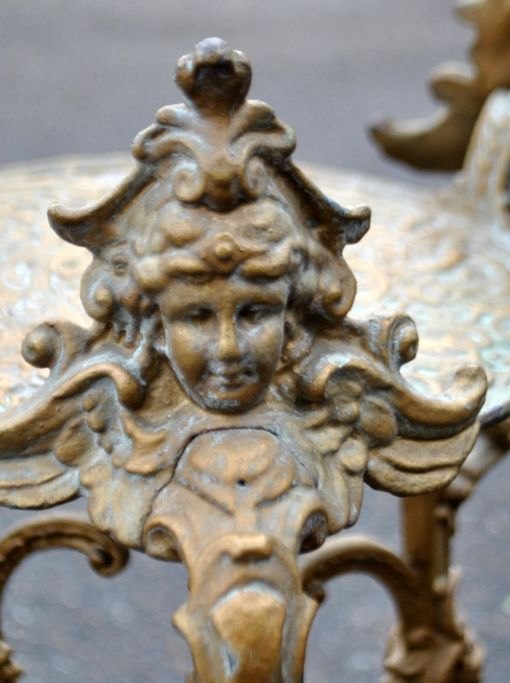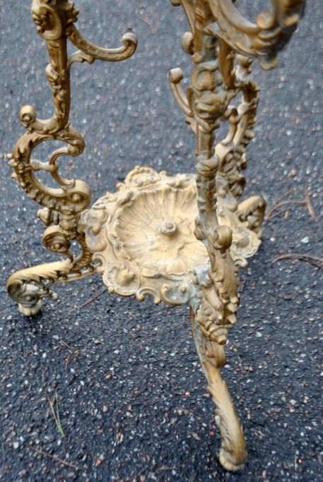 Eiserner Sockel, um 1870, Dänemark. Auf drei Beinen, verziert mit Engeln und Delfinen. Höhe: 75 cm.