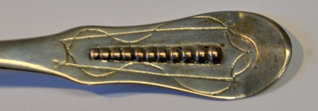 Andreas Christian Bödewatt (1736–1815), Tønder, Dänemark: Silber Speiselöffel. Mit Verzierungen am Griff. Gestempelt mit Meister- und Stadtmarke. Länge: 20,5 cm. Ohne Gravuren.