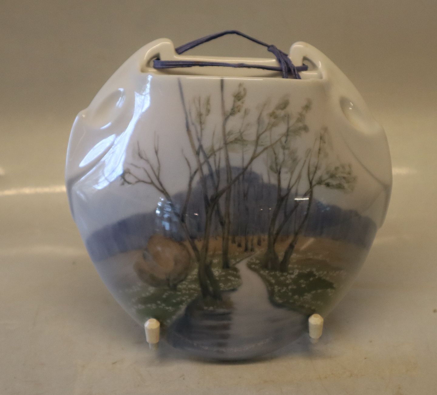 B&G 115-58 Art Nouveau vægvase - 18 x 18 cm træer langs bæk Bing & Grøndahl I fin og hel stand.