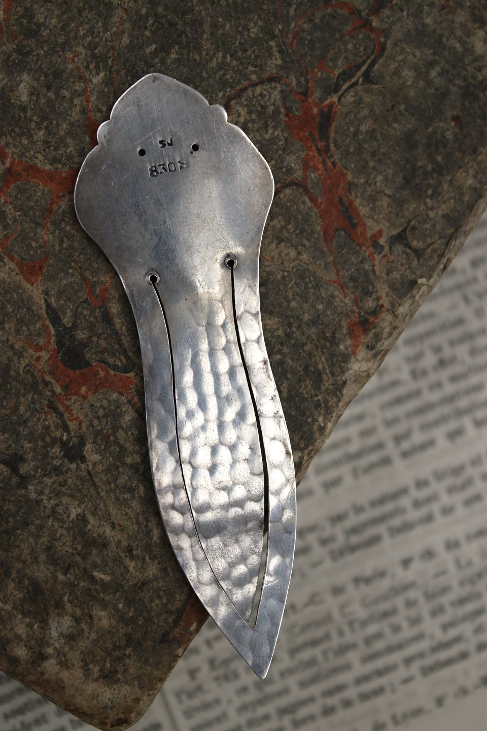 Gammelt bogmærke i sølv , stemplet 830s