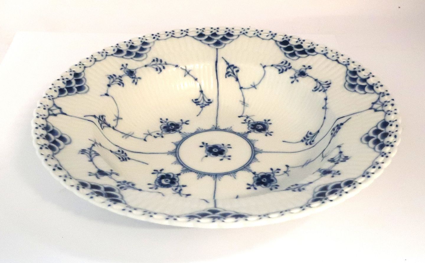 Royal Copenhagen. Musselmalet, Vollspitze. Tiefer Teller. Modell 1079. Durchmesser 23 cm. (1 Wahl).