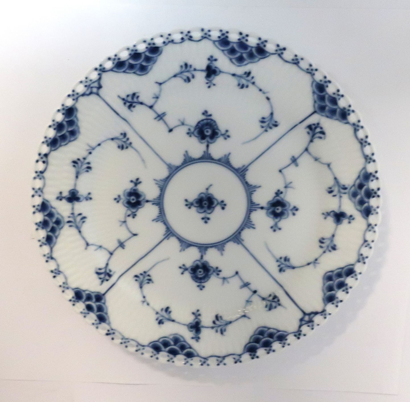 Royal Copenhagen. Musselmalet, Vollspitze. Menüe Teller, extra flach. Modell 1089. Durchmesser 25 cm. (1 Wahl).