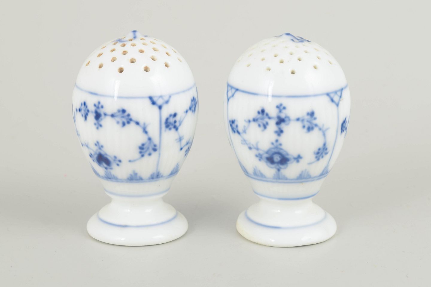Musselmalet riflet salt- og pebersæt, ca. 1900.