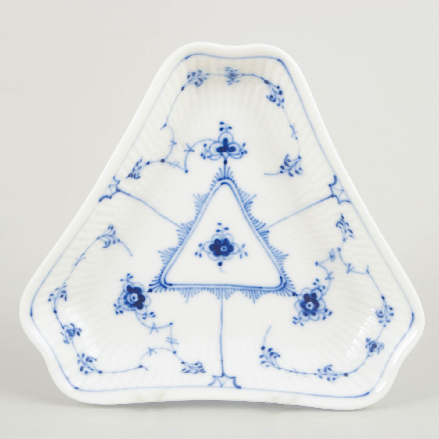 Royal Copenhagen Musselmalet Riflet trekantet asiet, 1960’erne.