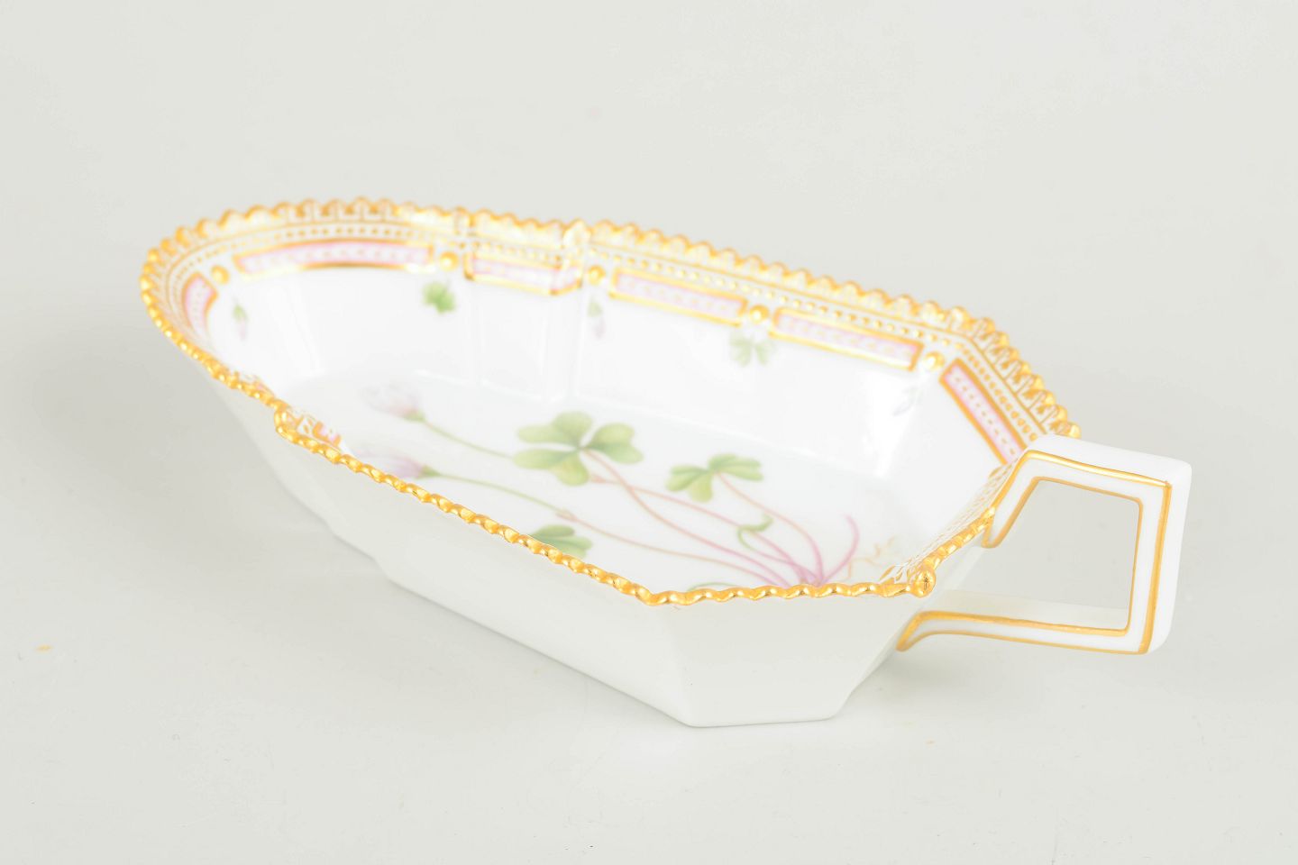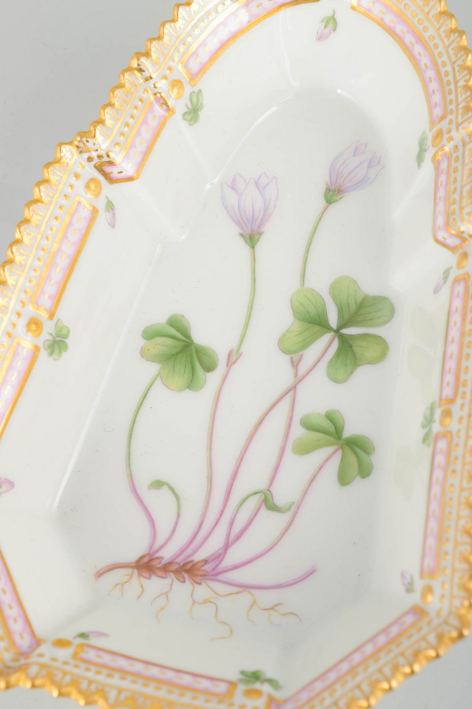 Bio: Flora Danica-stellet blev introduceret i 1790 og regnes blandt Royal Copenhagens mest prestigefyldte produktioner. Dekorationerne er baseret på det monumentale botaniske værk Flora Danica og er kendt for deres høje detaljerigdom og håndværksmæssige kvalitet. Specialdele som serveringsfade med hank vidner om stellets brede sortiment og anvendelse ved det forfinede bord.